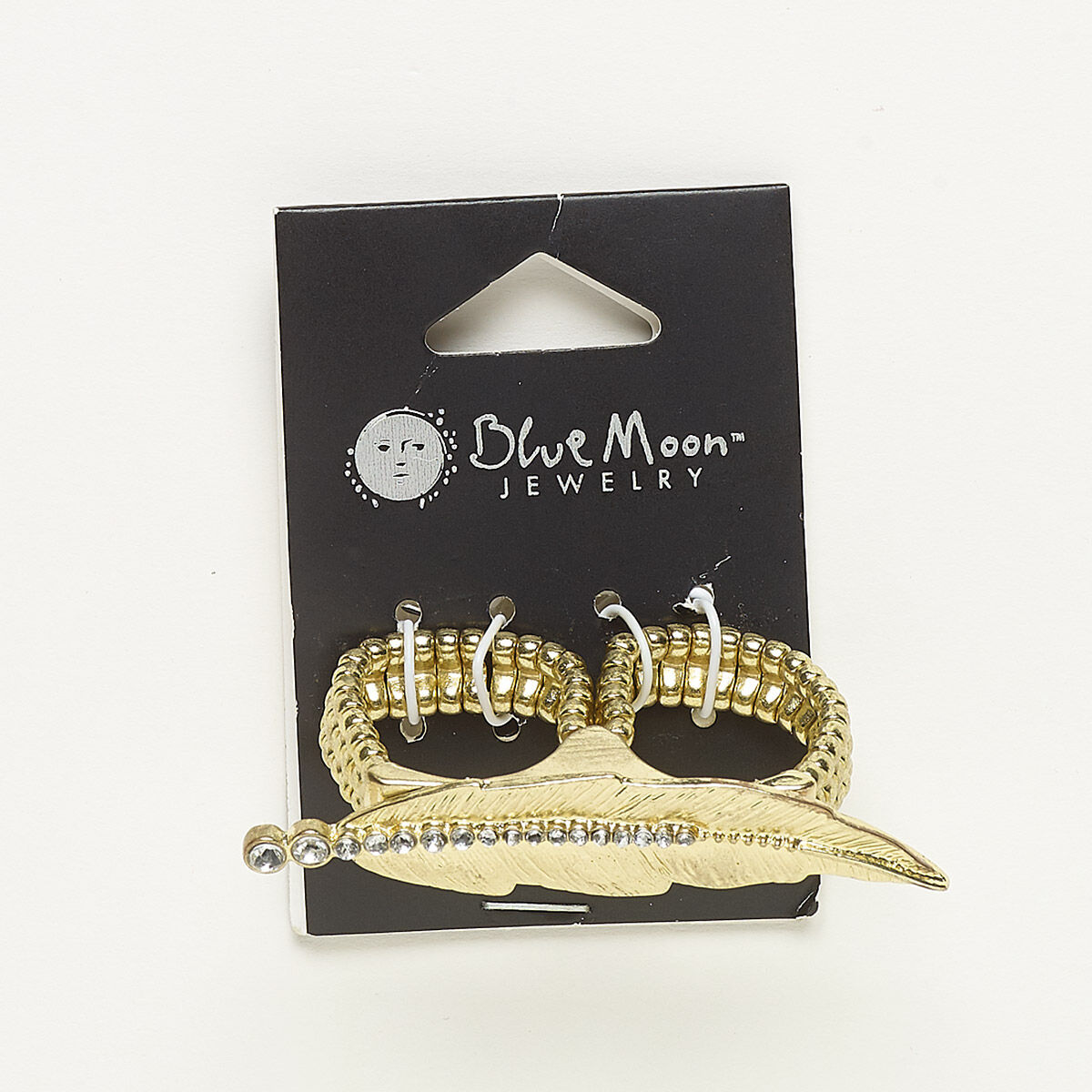 Ring, stretch, acrylic and gold-finished "pewter" (zinc-based alloy), clear, 13mm wide double-band with 59x13mm feather, size 6-8. Sold individually.