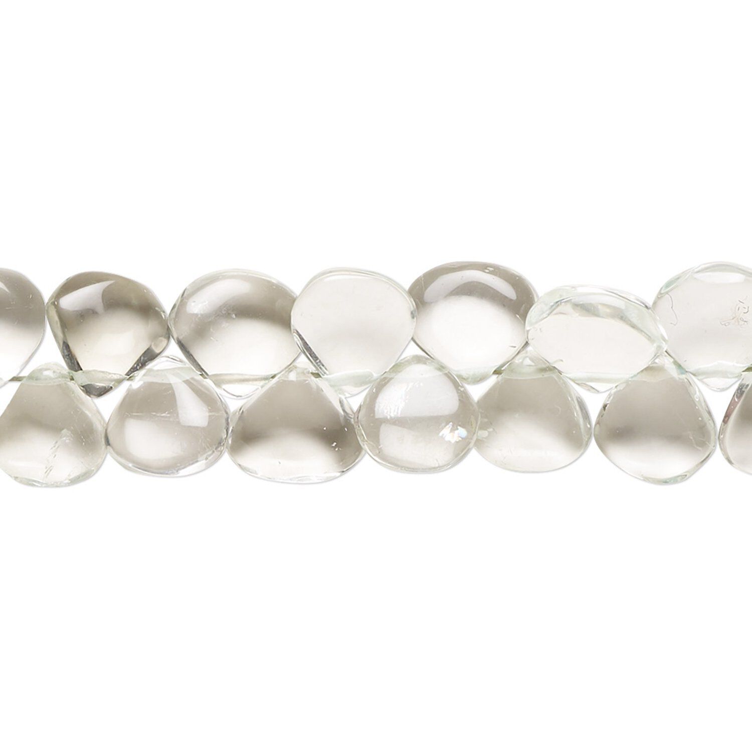 Green quartz 1pkg1, hand-cut top-drilled puffed teardrop bead 10 inch 7x6mm-9x9mm