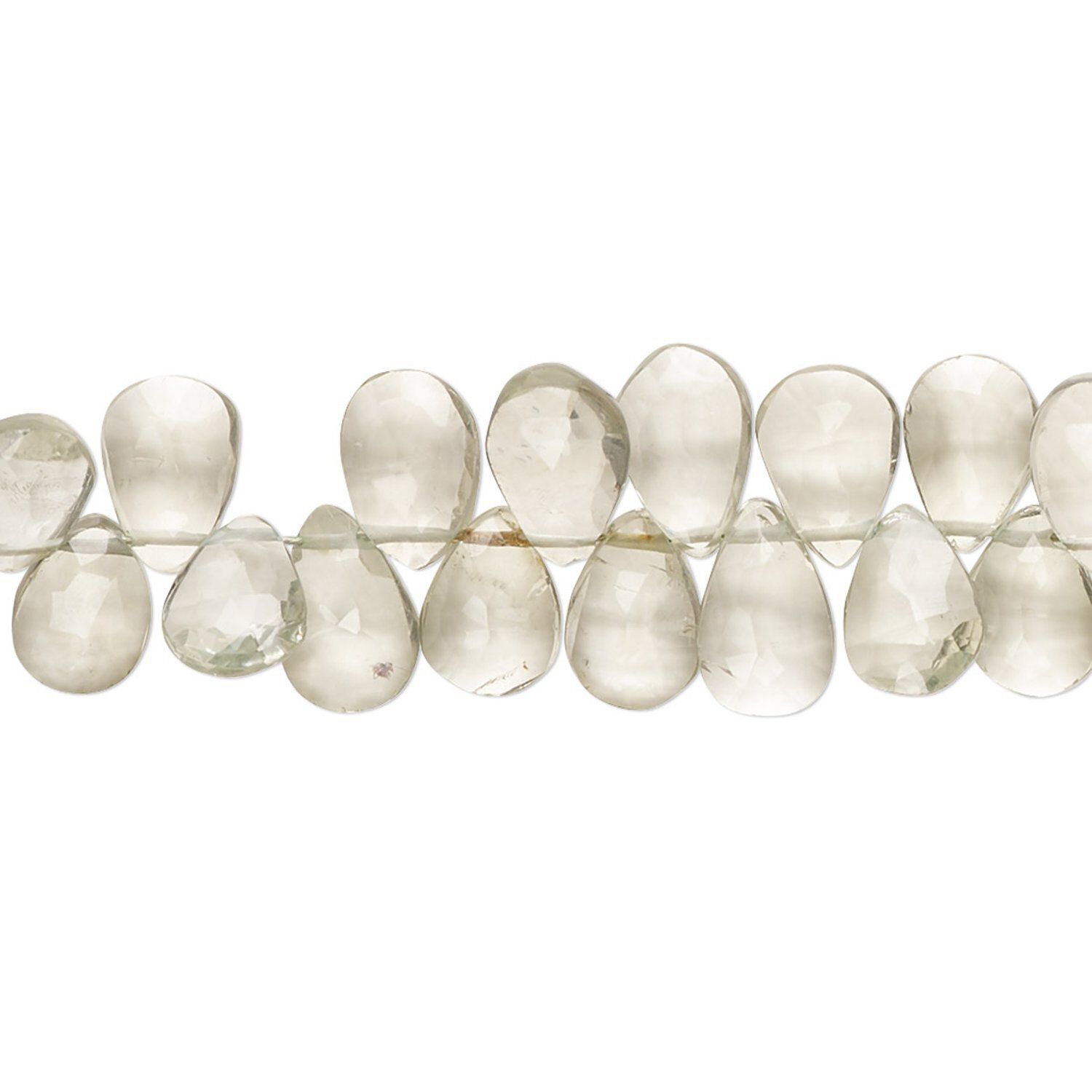 Green quartz 1pkg1, hand-cut top-drilled faceted puffed teardrop bead 7 inch 7x5mm-10x6mm
