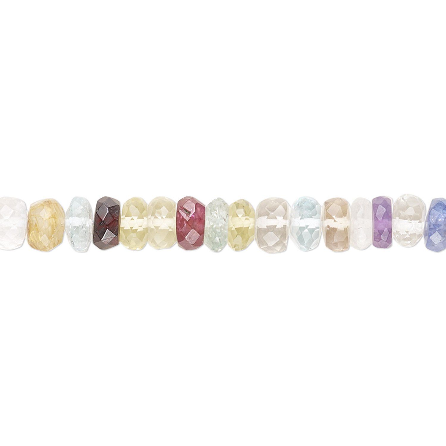 Multi-gemstone 1pkg1, hand-cut micro-faceted rondelle bead 7.5 inch 4x2-6x3mm