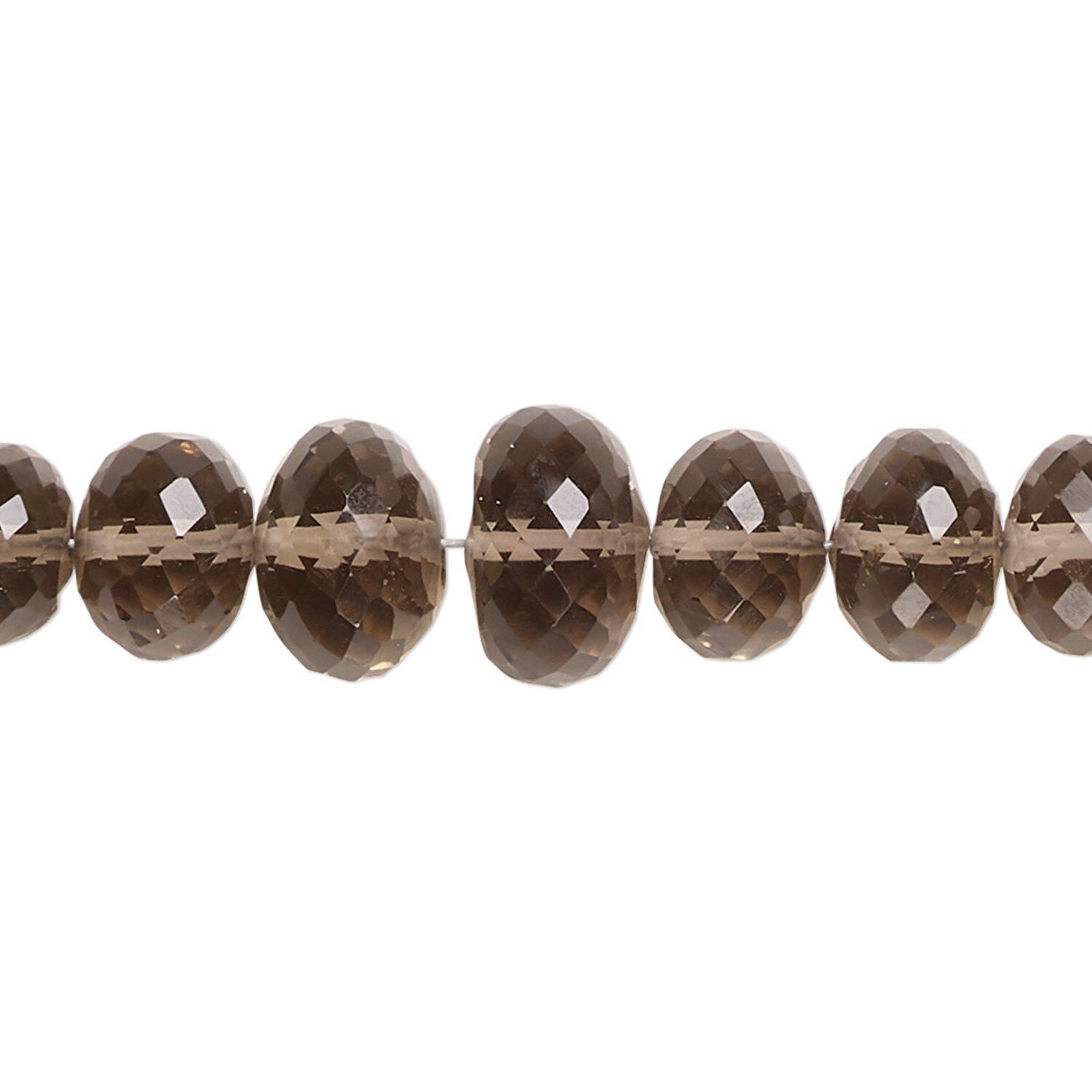 Bead, smoky quartz (heated / irradiated), 6x4mm-11x7mm graduated hand-cut faceted rondelle with 0.4-1.4mm hole, B+ grade, Mohs hardness 7. Sold per 8-inch strand.