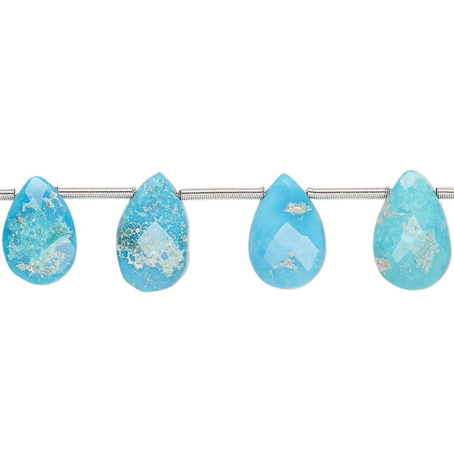Imperial crown turquoise 1pkg15, hand-cut top-drilled faceted puffed teardrop bead natural 10x6mm-12x8mm