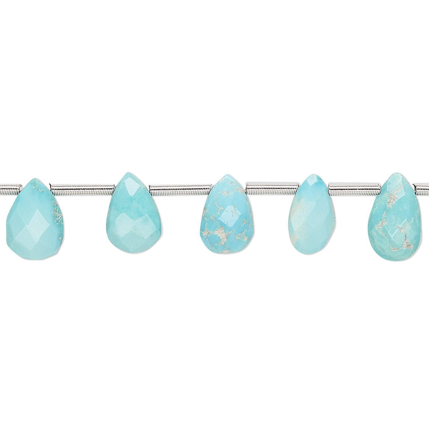 Imperial crown turquoise 1pkg19, hand-cut top-drilled faceted puffed teardrop bead natural 7x5mm-9x7mm