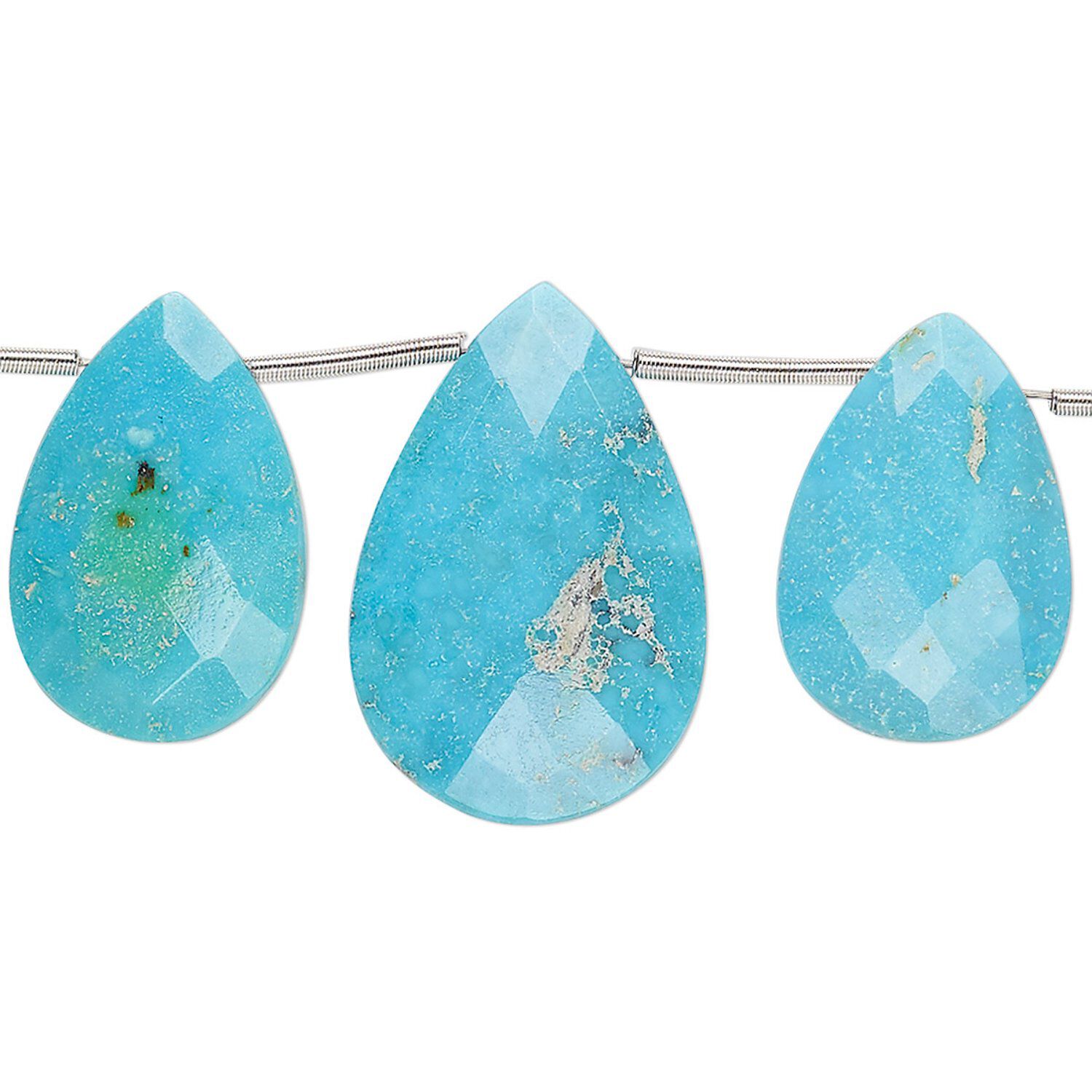 Imperial crown turquoise 1pkg3, hand-cut top-drilled faceted puffed teardrop bead natural 15x12mm-19x14mm / 20x14mm-24x16mm