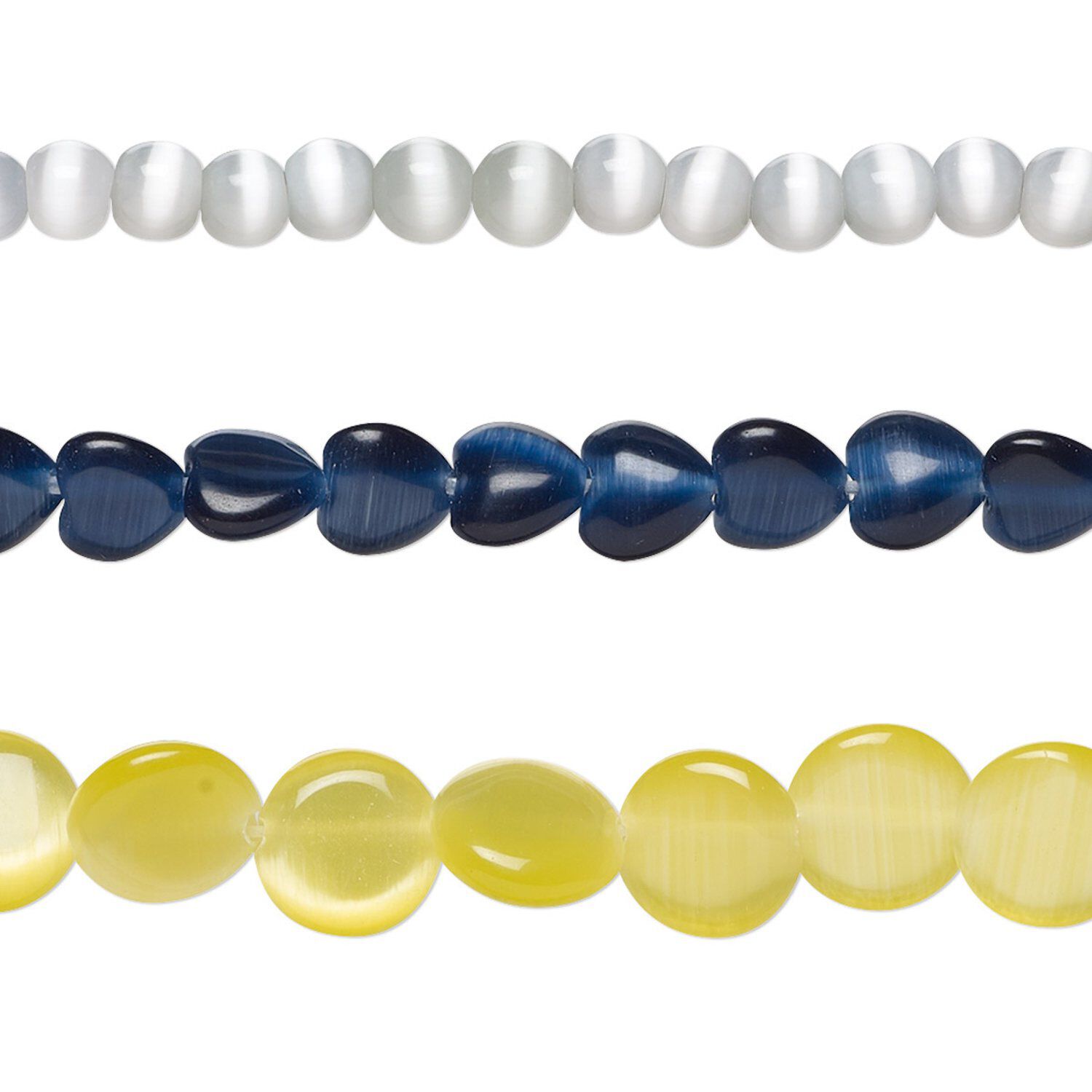 Bead mix, cat's eye glass (fiber optic glass), opaque mixed colors, 4x2mm-10mm mixed shapes. Sold per pkg of (3) 14-inch strands.