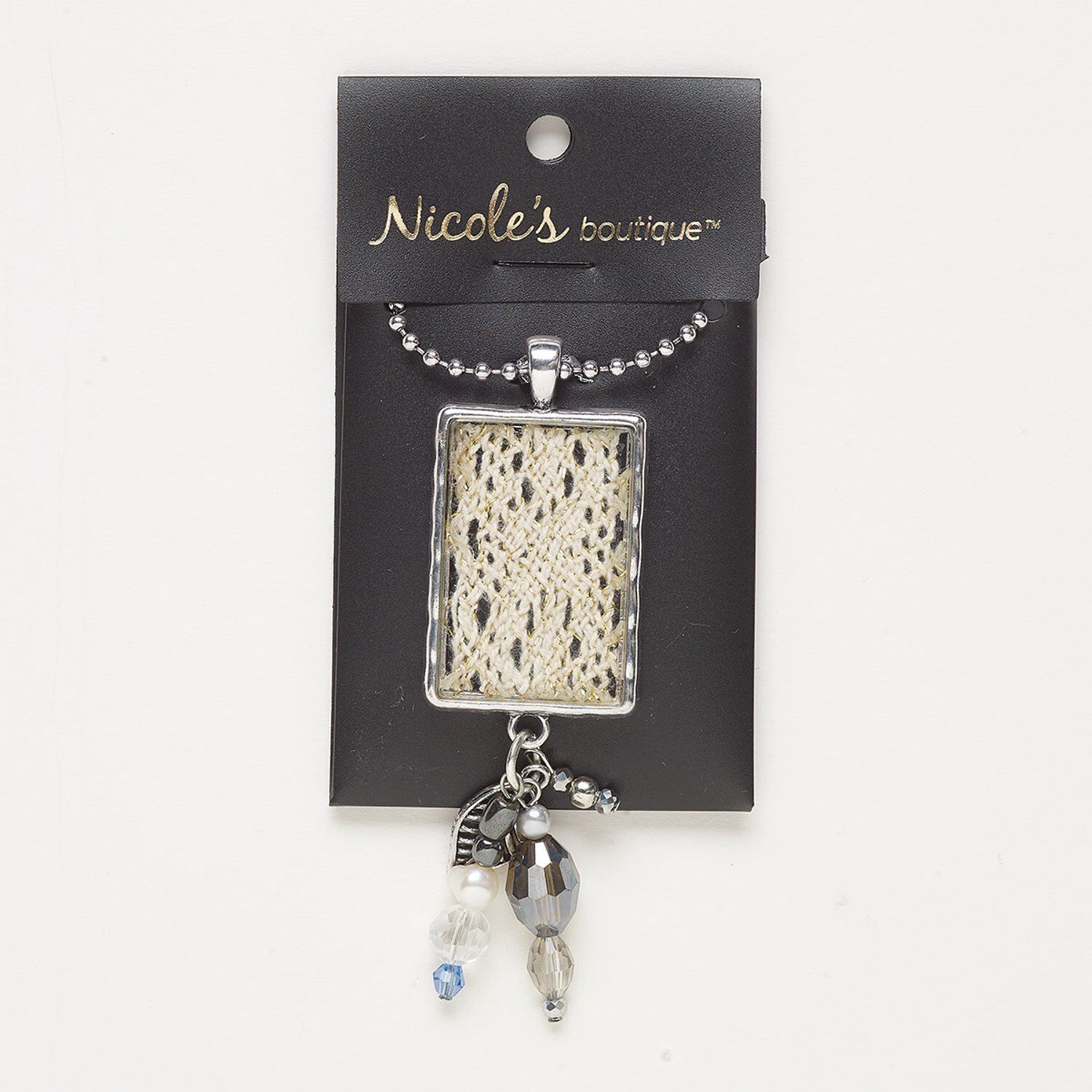 Necklace, glass / fabric / acrylic / antique silver-finished "pewter" (zinc-based alloy) / silver-finished steel, multicolored, 80x27mm rectangle, 24 inches with lobster claw clasp. Sold individually.
