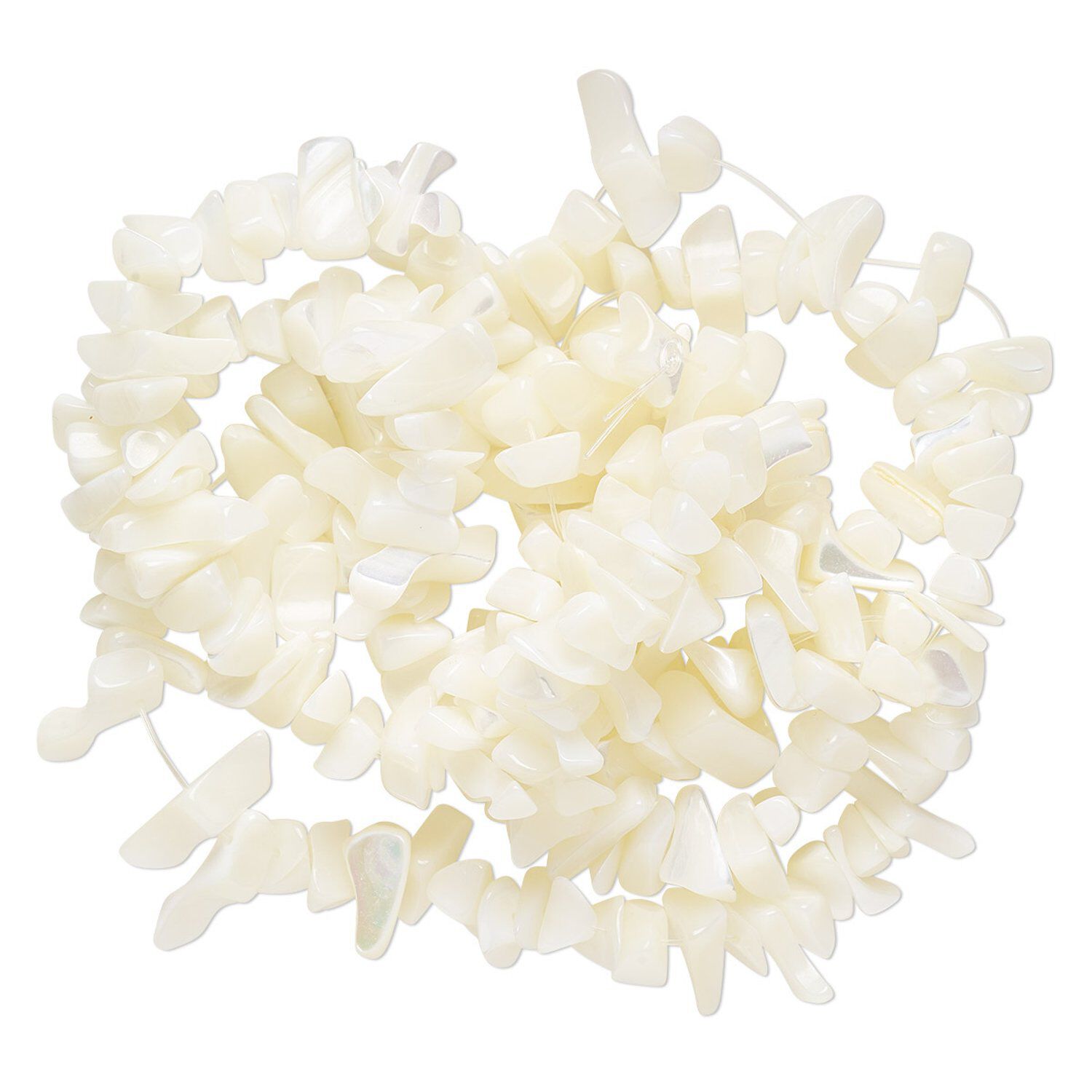 Bead, mother-of-pearl shell (bleached), large chip, Mohs hardness 3-1/2. Sold per 36-inch strand.