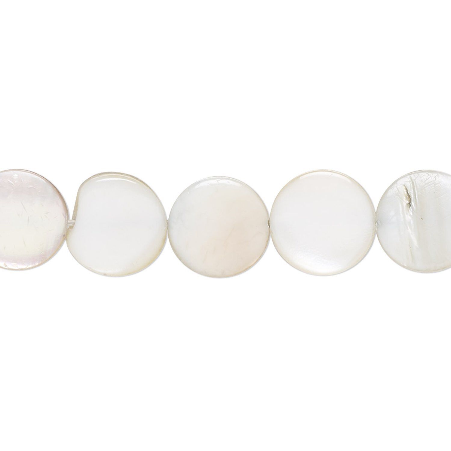 Bead, mother-of-pearl shell (dyed), light grey, 10mm flat round with 0.6-1mm hole, Mohs hardness 3-1/2. Sold per 15-inch strand.