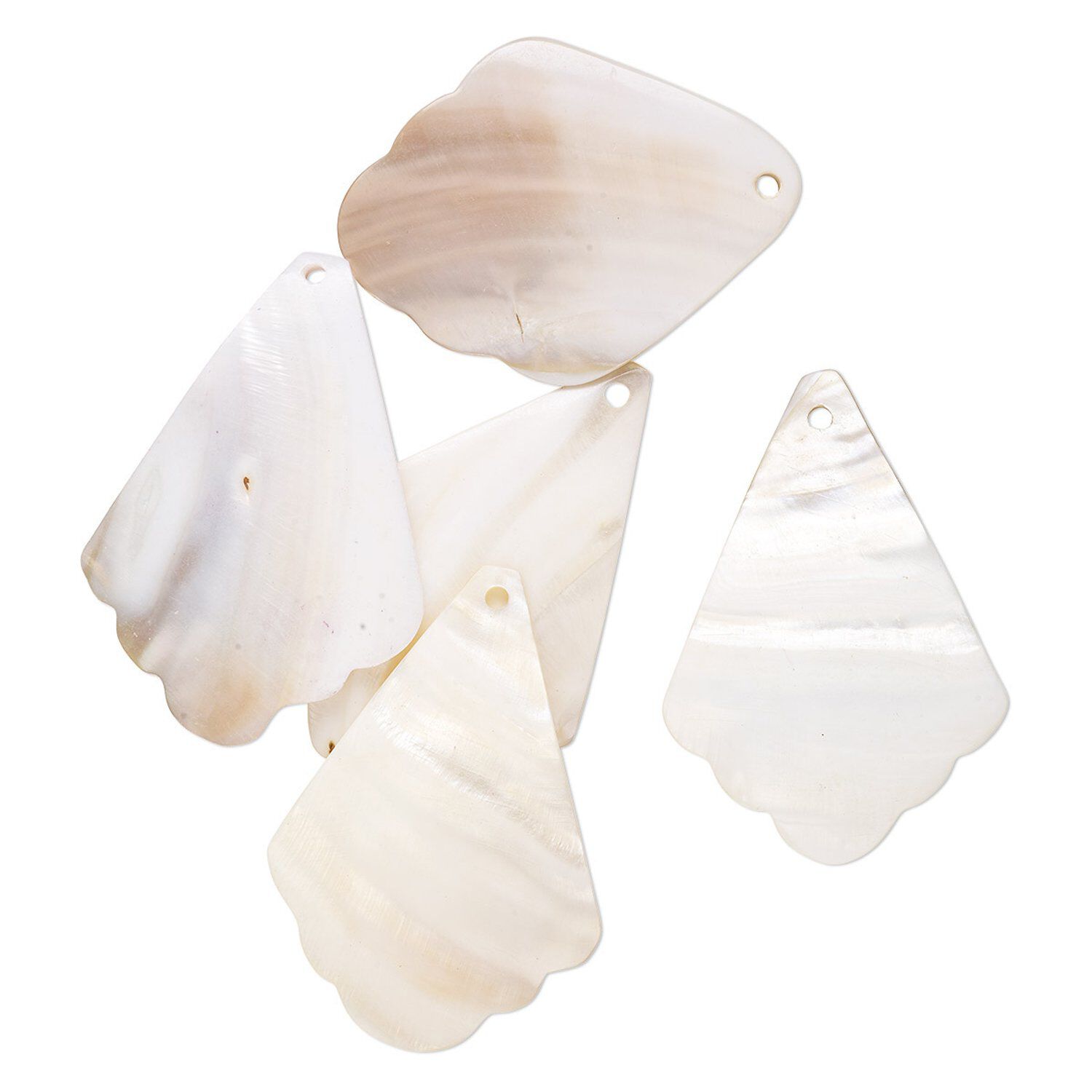 Mother-of-pearl shell will vary in color from white to ivory in a variety of hues. Since shell is a natural material, shape, color and size will vary.