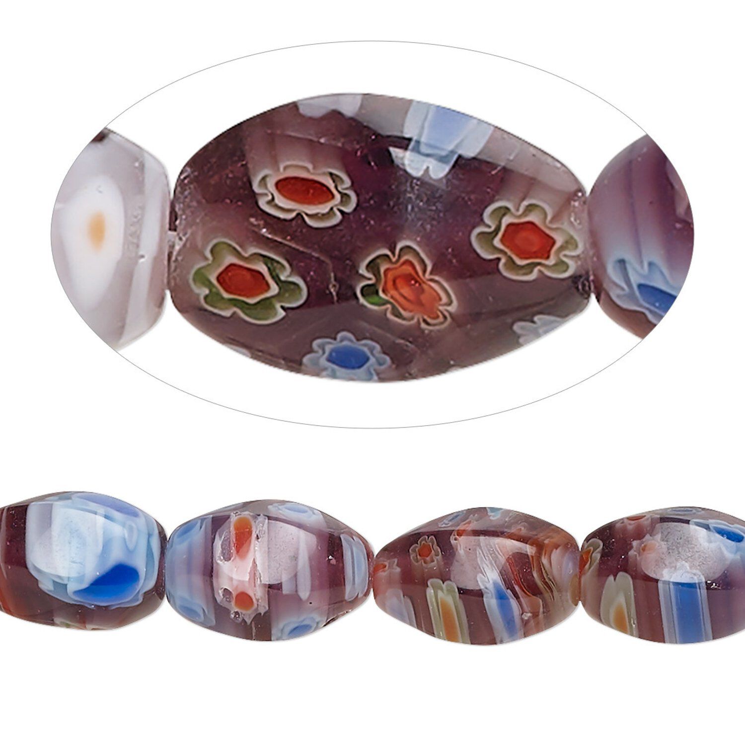 Bead, millefiori glass, translucent multicolored, 12x7mm 6-sided twisted oval with 0.6-0.8mm hole. Sold per 15-inch strand.