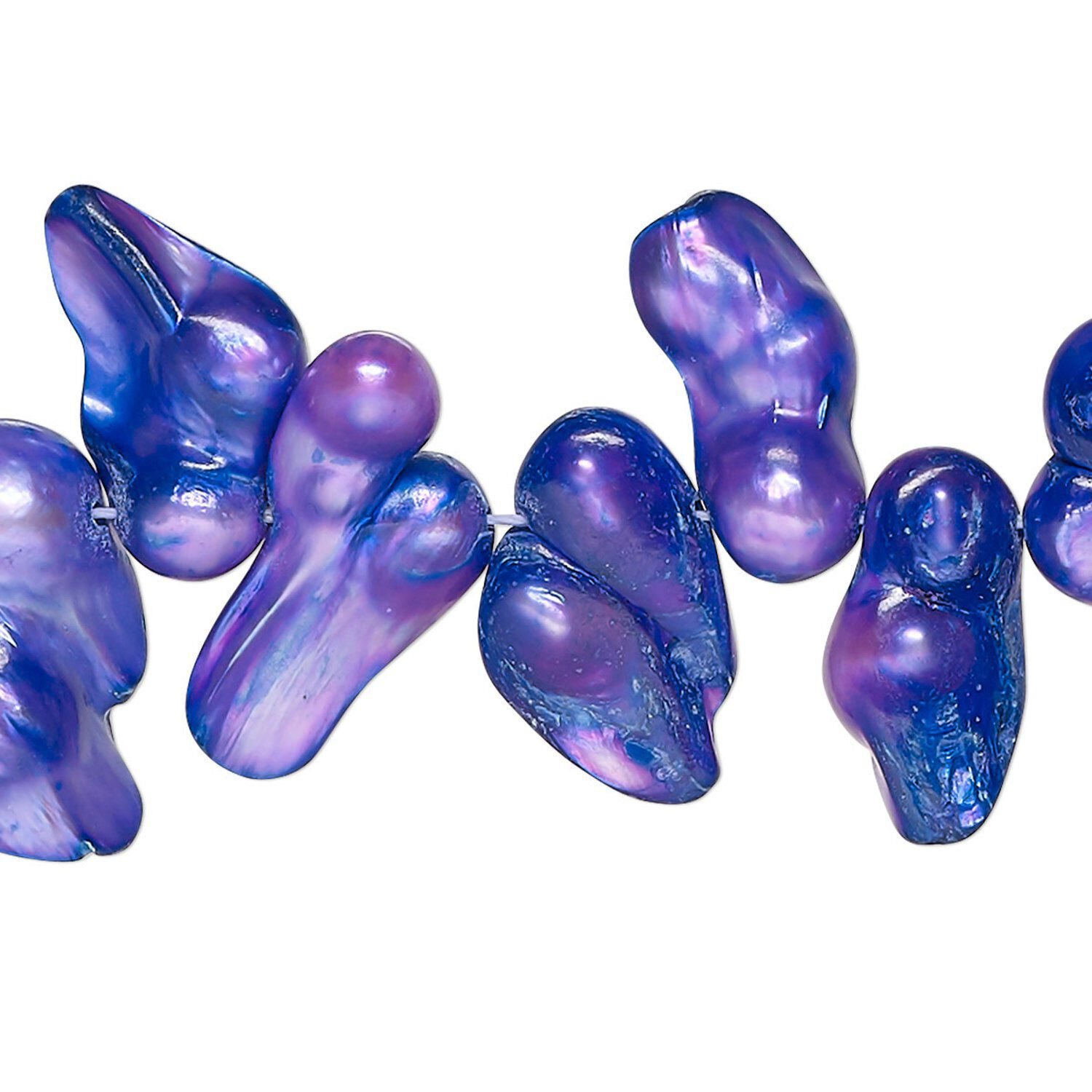 Pearl, cultured freshwater (dyed), midnight purple, 10x7mm-20x13mm baroque with 0.4mm hole, D grade, Mohs hardness 2-1/2 to 4. Sold per 15-inch strand.