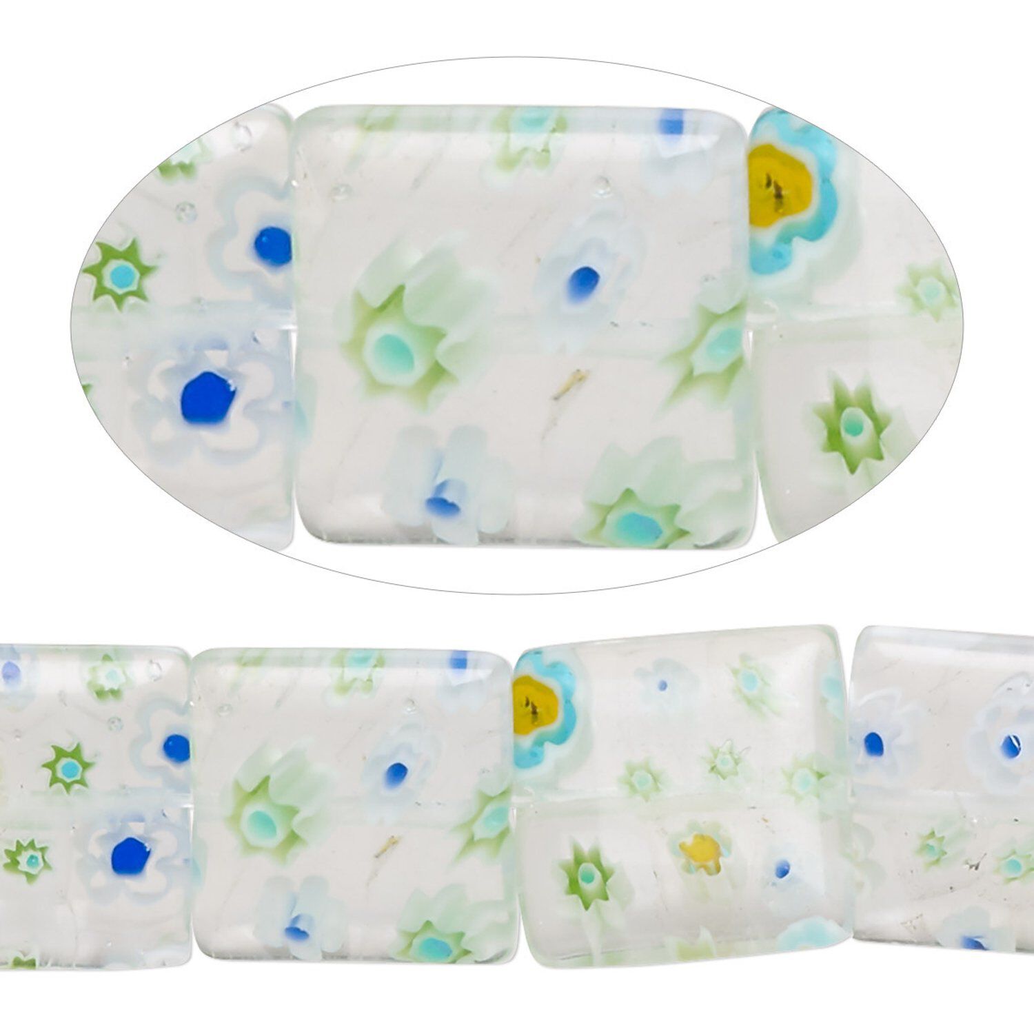 Bead, millefiori glass, translucent and transparent multicolored, 14mm puffed square with 0.6-0.8mm hole. Sold per 15-inch strand.