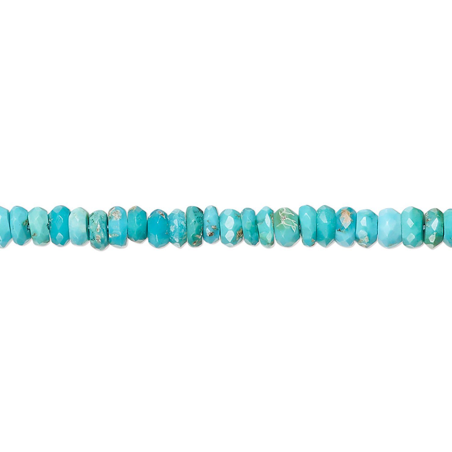 Bead, turquoise (dyed / stabilized), blue, 4x2mm-5x3mm faceted rondelle with 0.5-1.5mm hole, B- grade, Mohs hardness 5 to 6. Sold per 13-inch strand.