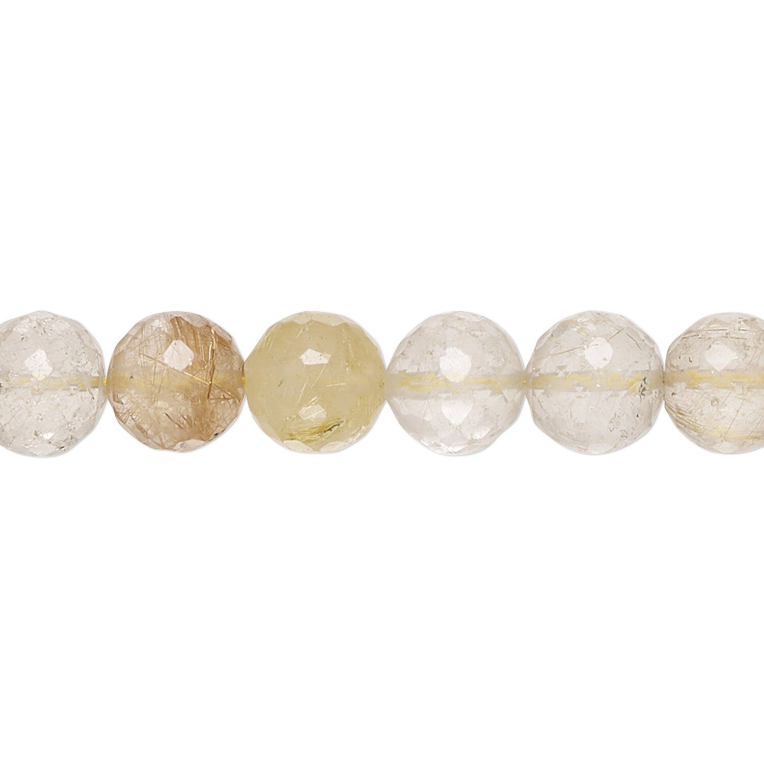 Rutilated quartz 1pkg1, hand-cut micro-faceted round bead natural 8 inch 8-9mm