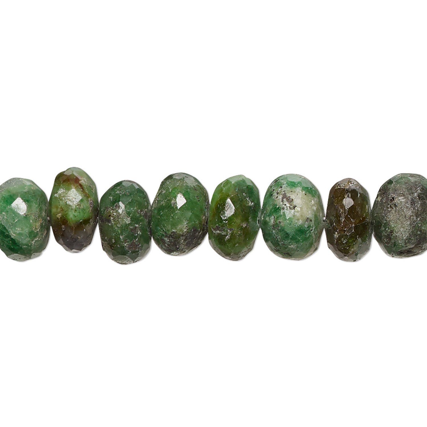 Bead, chrome diopside (natural), 9x5mm-10x5mm hand-cut faceted rondelle with 0.4-1.4mm hole, C grade, Mohs hardness 5-1/2 to 6. Sold per 8-inch strand.