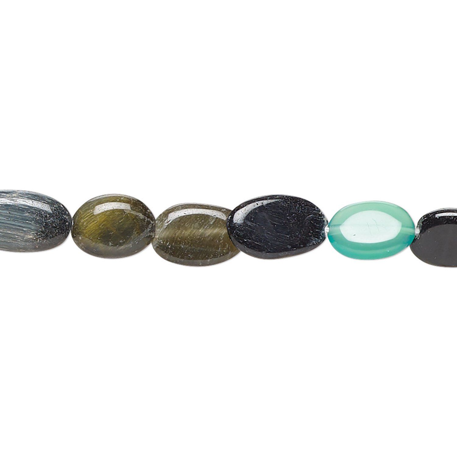 Materials can include tigereye, green onyx, imitation turquoise and more. Strand may contain occasional different shape. Sizes, shapes and colors may vary with handcrafted items.
