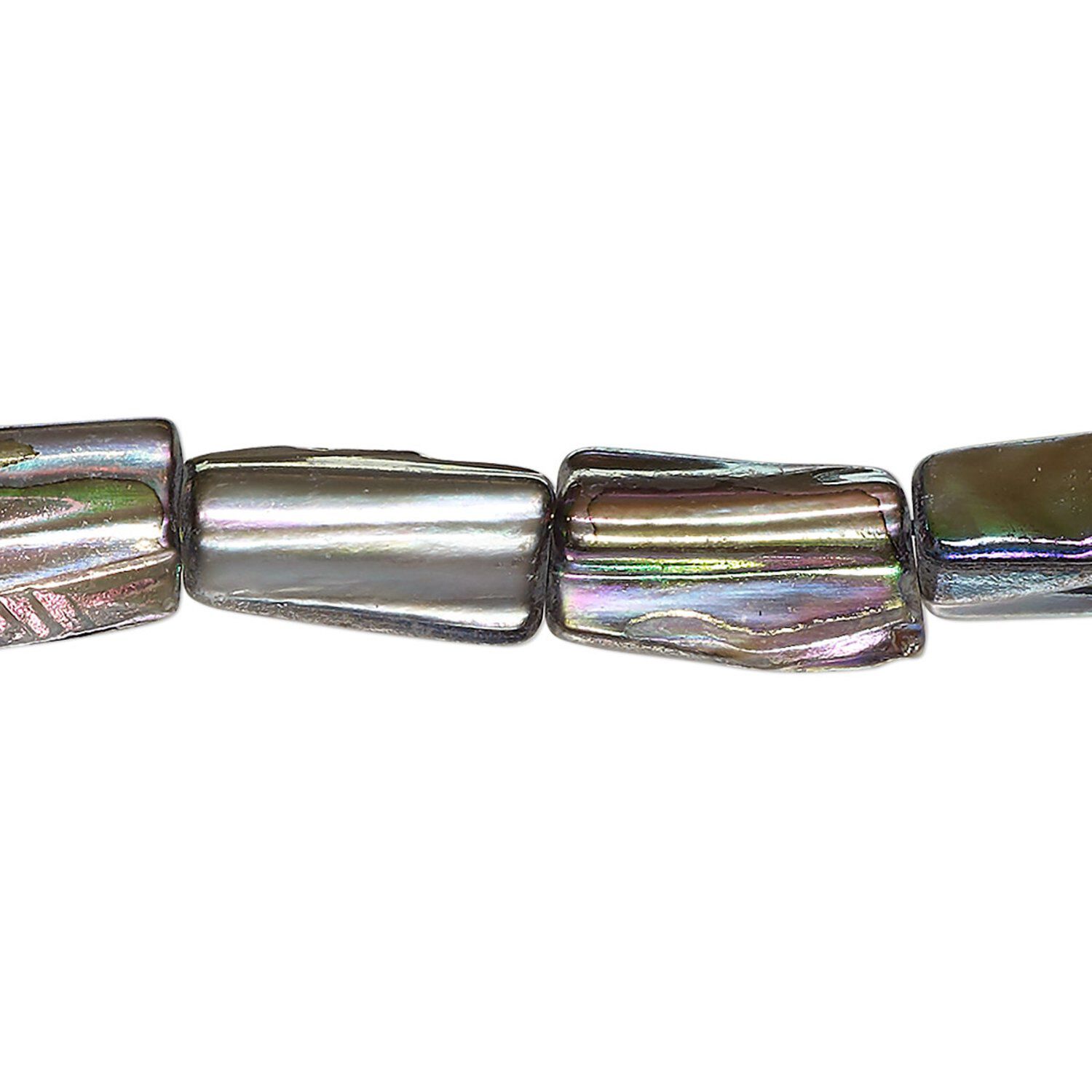 Bead, mother-of-pearl shell (dyed), peacock, 15x9mm-15x10mm triangular tube with 0.4-0.6mm hole, Mohs hardness 3-1/2. Sold per 15-inch strand.