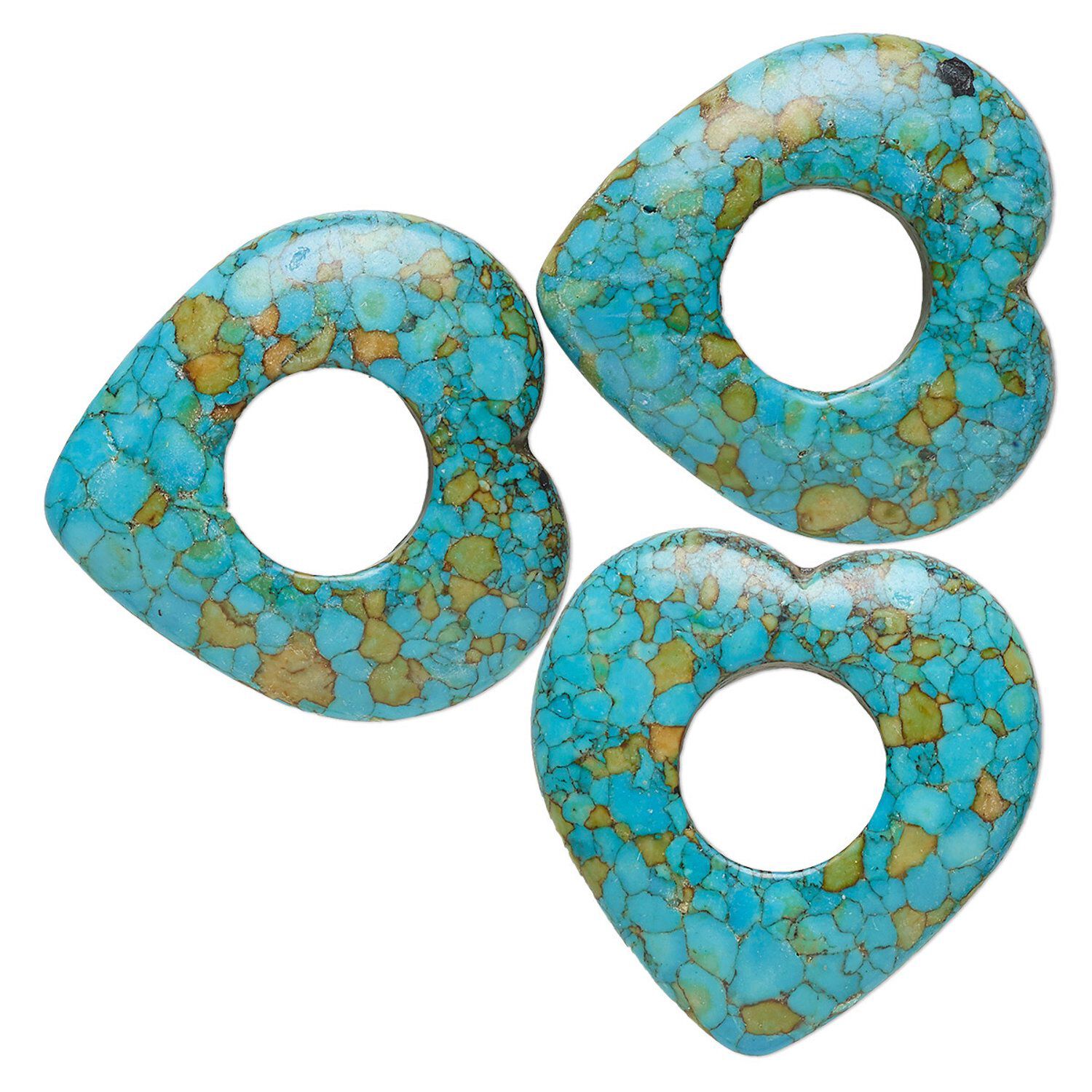 Mosaic "turquoise" (magnesite) 1pkg3, heart donut focal 41x40mm