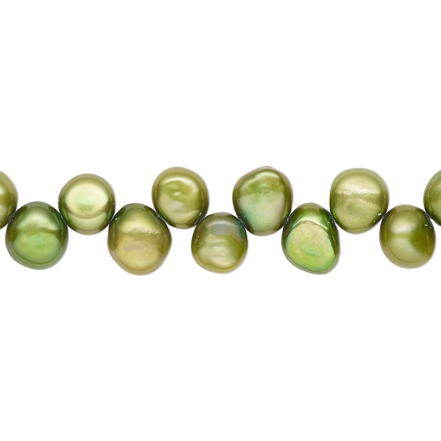 Pearl, cultured freshwater (dyed), dark yellow-green, 5-6mm top-drilled flat-sided potato with 0.4-0.5mm hole, D grade, Mohs hardness 2-1/2 to 4. Sold per 14-inch strand.