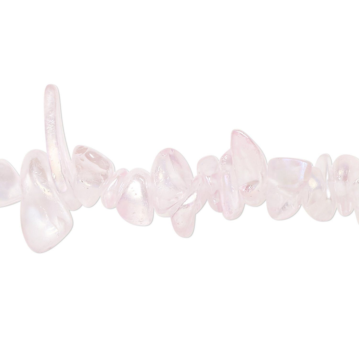 Bead, glass, translucent light pink AB, medium chip with 0.6-0.8mm hole. Sold per 32-inch strand, approximately 290-320 beads.