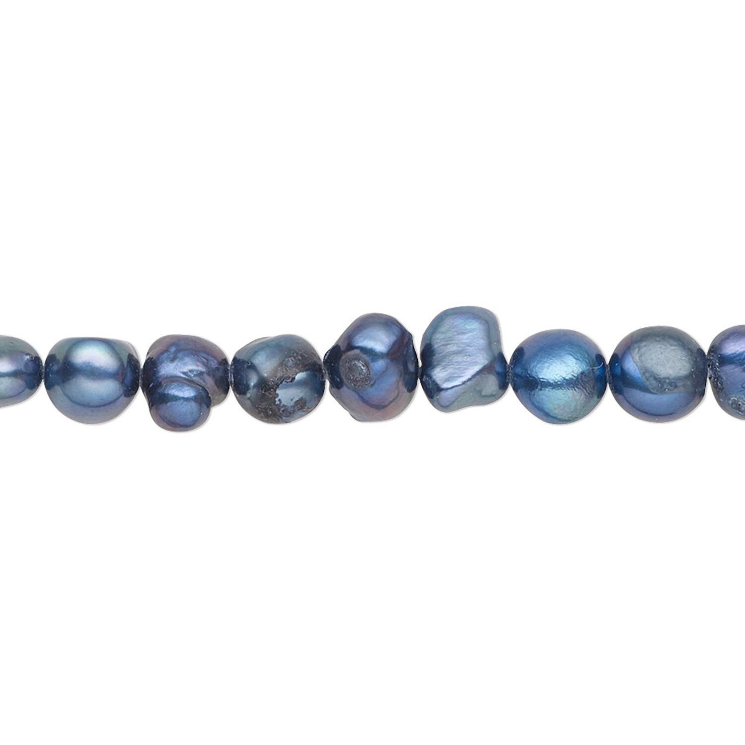 Pearl, cultured freshwater (dyed), mountain blue, 5-6mm flat-sided potato with 0.4-0.6mm hole, D grade, Mohs hardness 2-1/2 to 4. Sold per 15-inch strand.