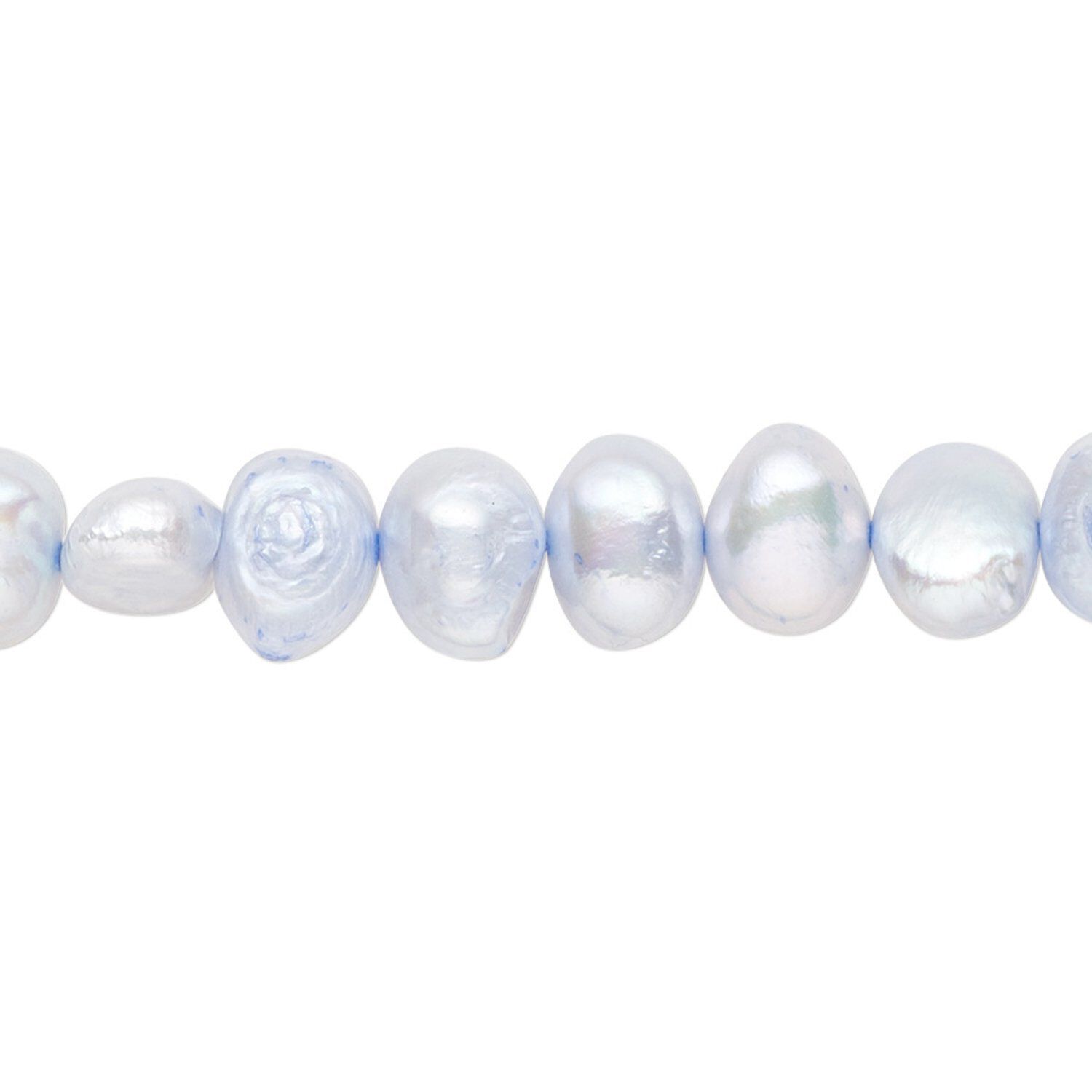 Pearl, cultured freshwater (dyed), misty blue, 6-8mm flat-sided potato with 0.4-0.6mm hole, D grade, Mohs hardness 2-1/2 to 4. Sold per 15-inch strand.