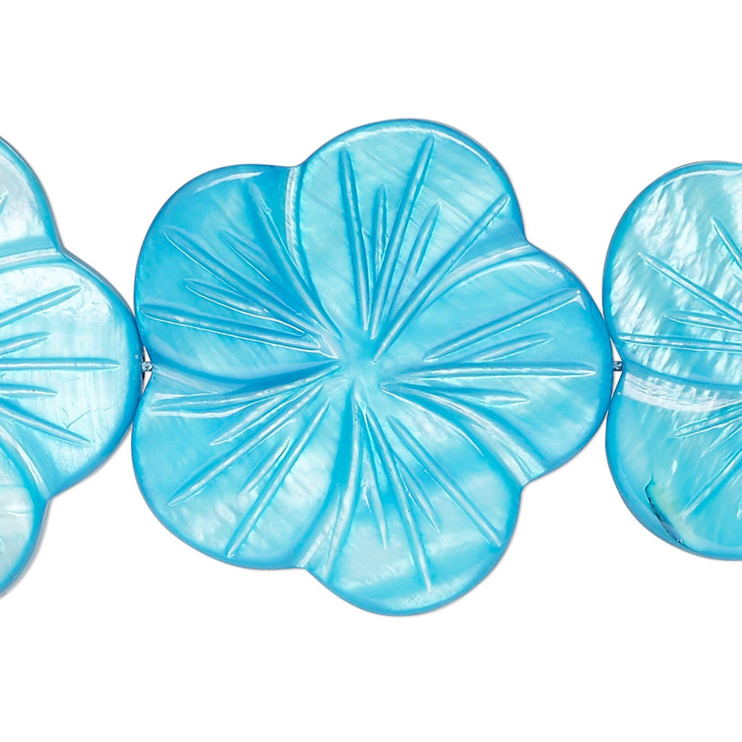 Bead, mother-of-pearl shell (dyed), dark aqua blue, 29x28mm-31x30mm carved flat flower, 0.6-0.8mm hole, Mohs hardness 3-1/2. Sold per 15-inch strand.