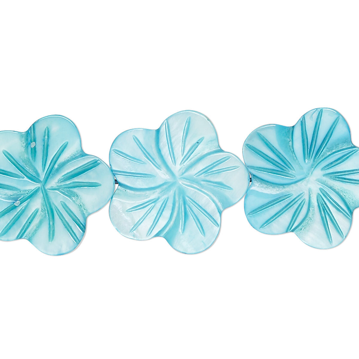 Bead, mother-of-pearl shell (dyed), dark aqua blue, 18x17mm-22x21mm carved flat flower with 0.6-0.8mm hole, Mohs hardness 3-1/2. Sold per 15-inch strand.