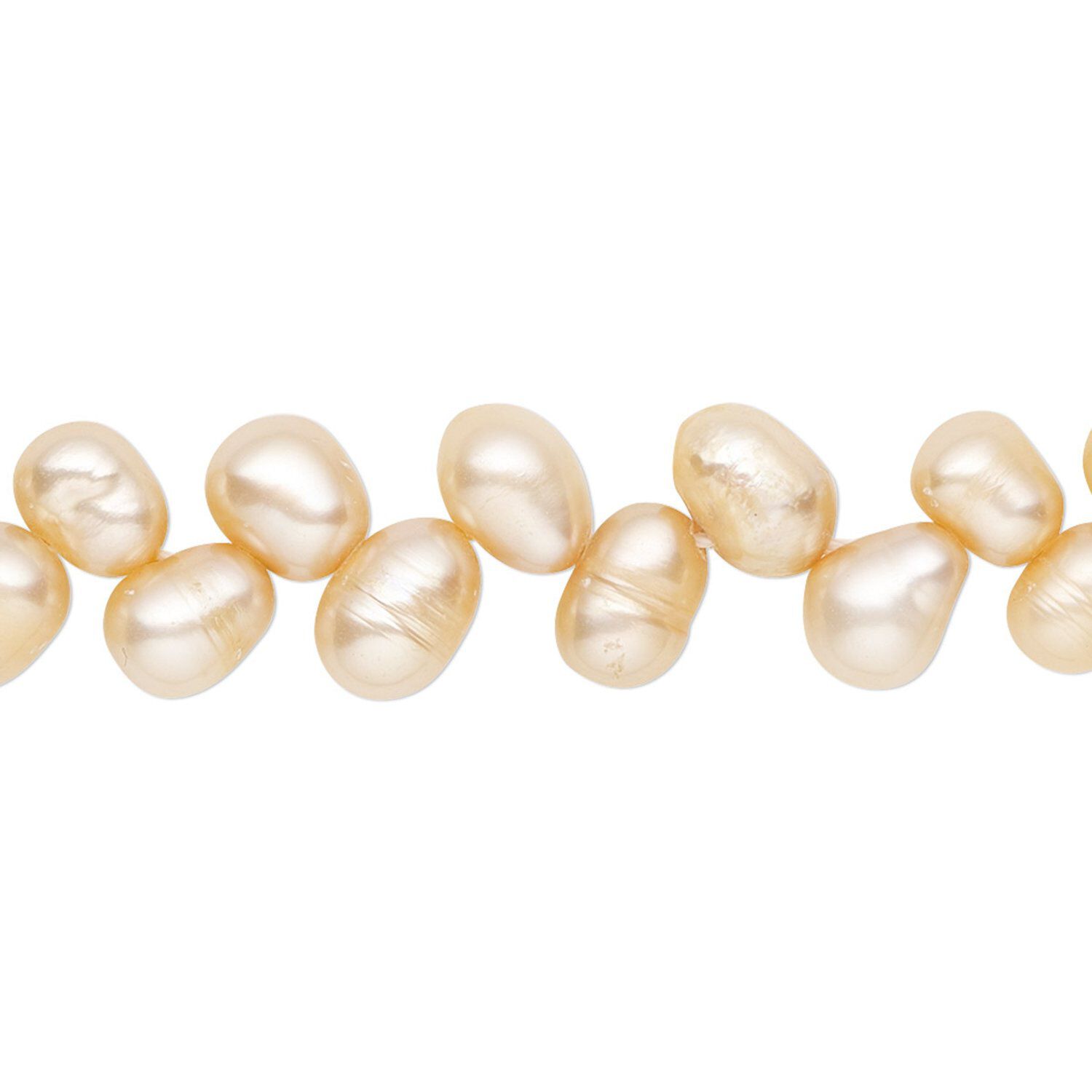 Pearl, cultured freshwater (natural), peach, 6x5mm-7x6mm herringbone-drilled rice with 0.4-0.6mm hole, C- grade, Mohs hardness 2-1/2 to 4. Sold per 14-inch strand.