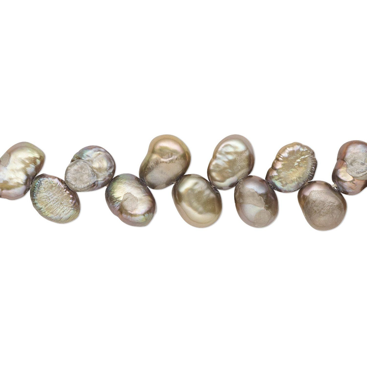 Pearl, cultured freshwater (dyed), brass, 6x5mm-8x6mm herringbone-drilled flat-sided rice with 0.4-0.6mm hole, D grade, Mohs hardness 2-1/2 to 4. Sold per 15-inch strand.