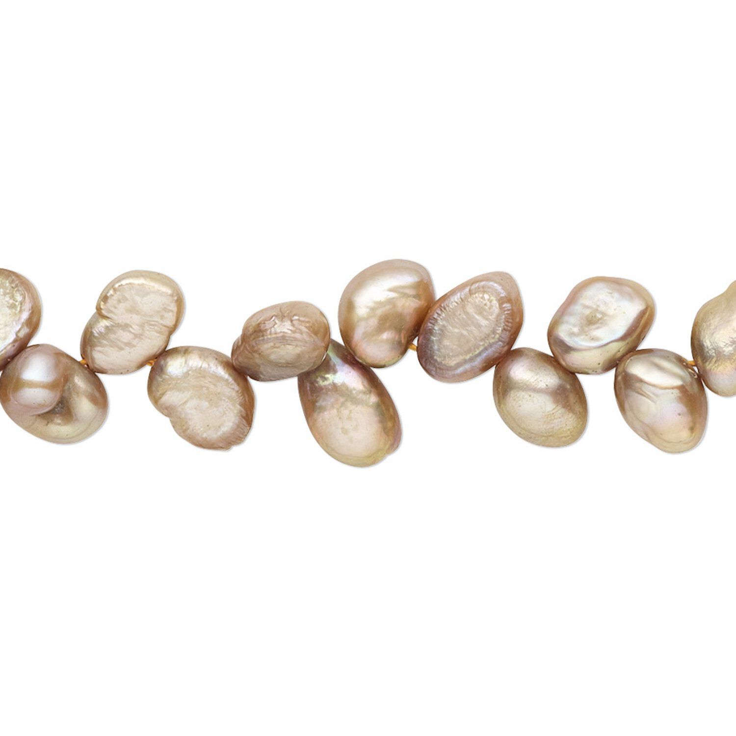 Pearl, cultured freshwater (dyed), soft gold, 6x5mm-7x6mm herringbone-drilled flat-sided rice with 0.4-0.6mm hole, C- grade, Mohs hardness 2-1/2 to 4. Sold per 15-inch strand.
