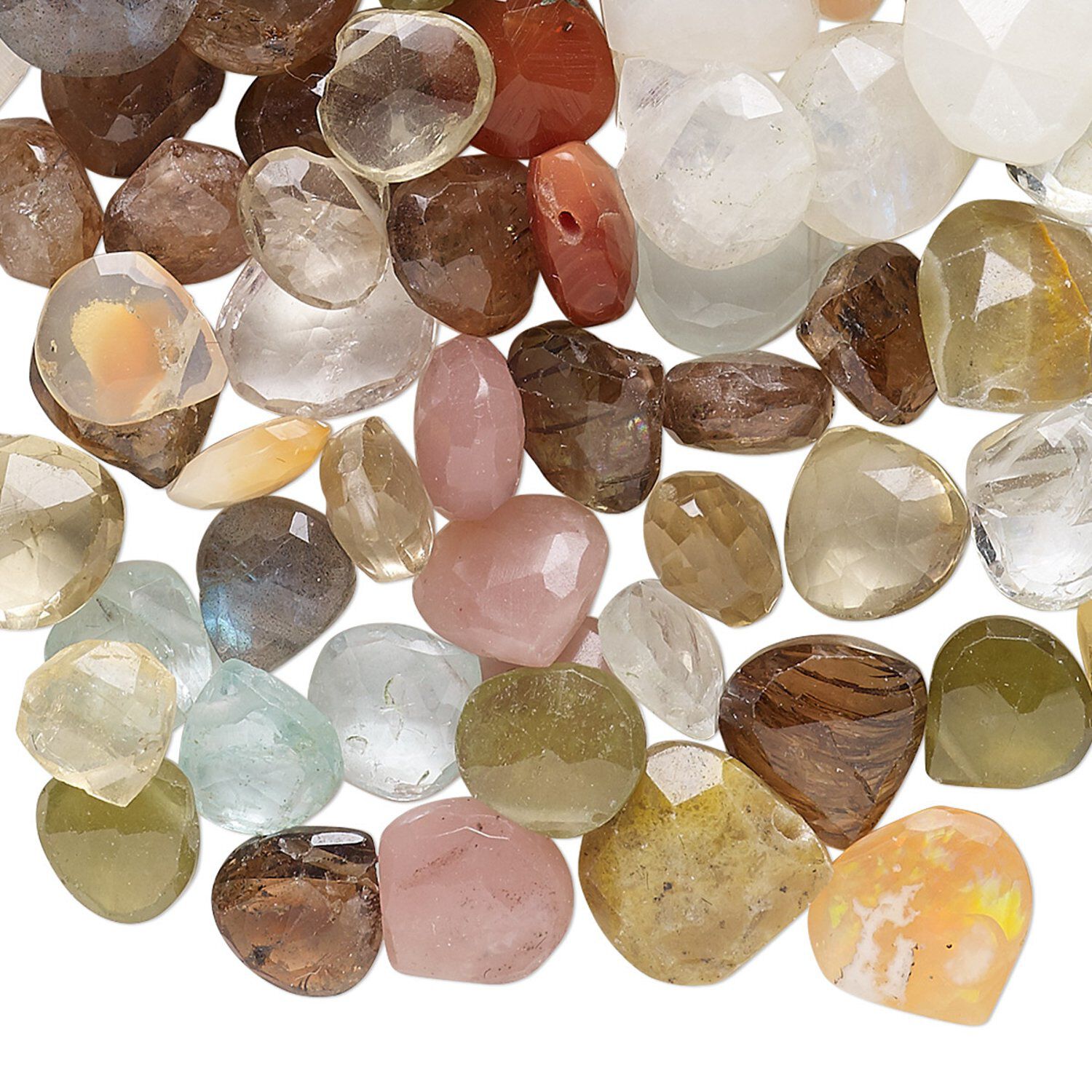 Multi-gemstone 1pkg1, hand-cut top-drilled faceted puffed teardrop bead 1 oz mix 6-9mm