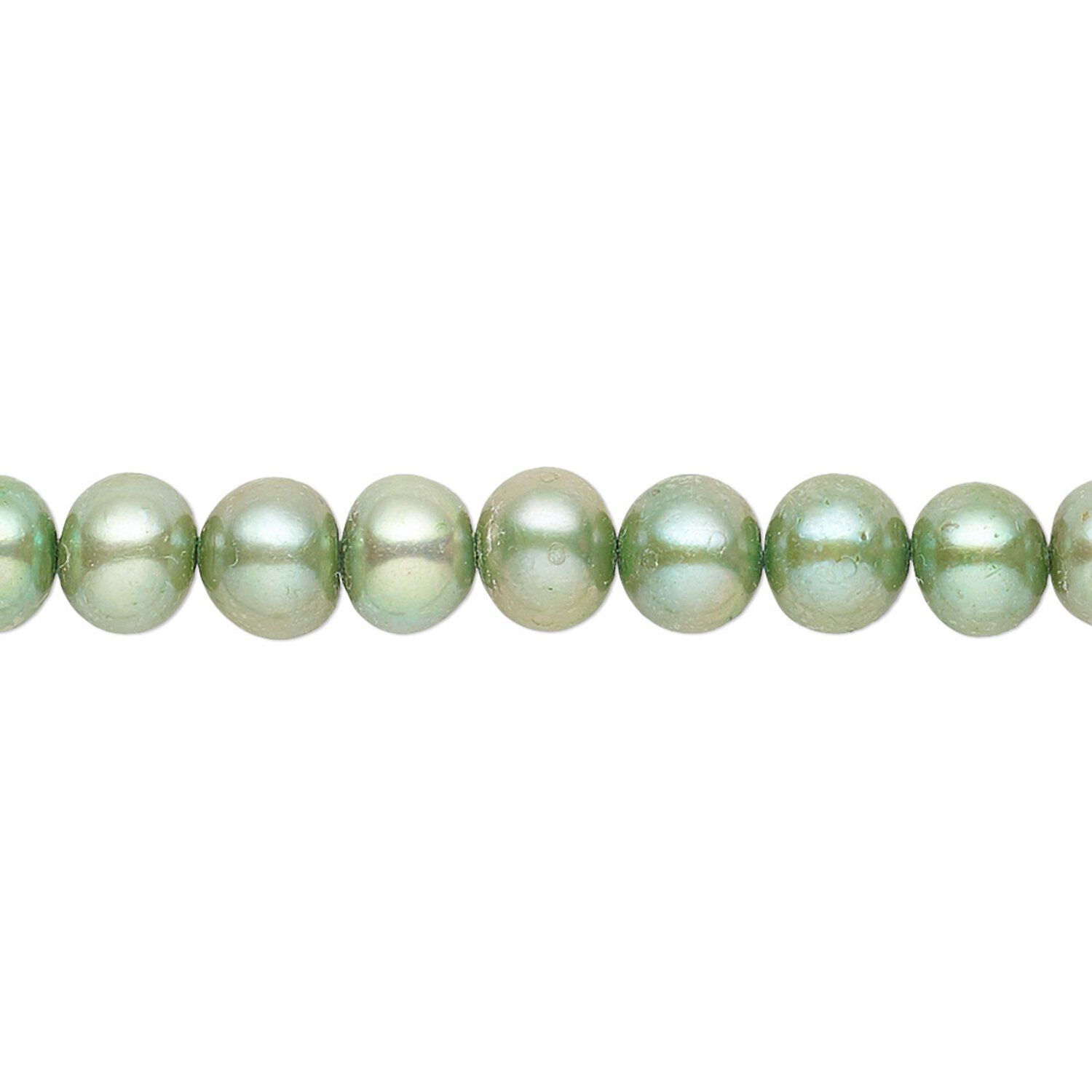 Pearl, cultured freshwater (dyed), kelly green, 5-6mm semi-round with 0.4-0.6mm hole, D grade, Mohs hardness 2-1/2 to 4. Sold per 15-inch strand.