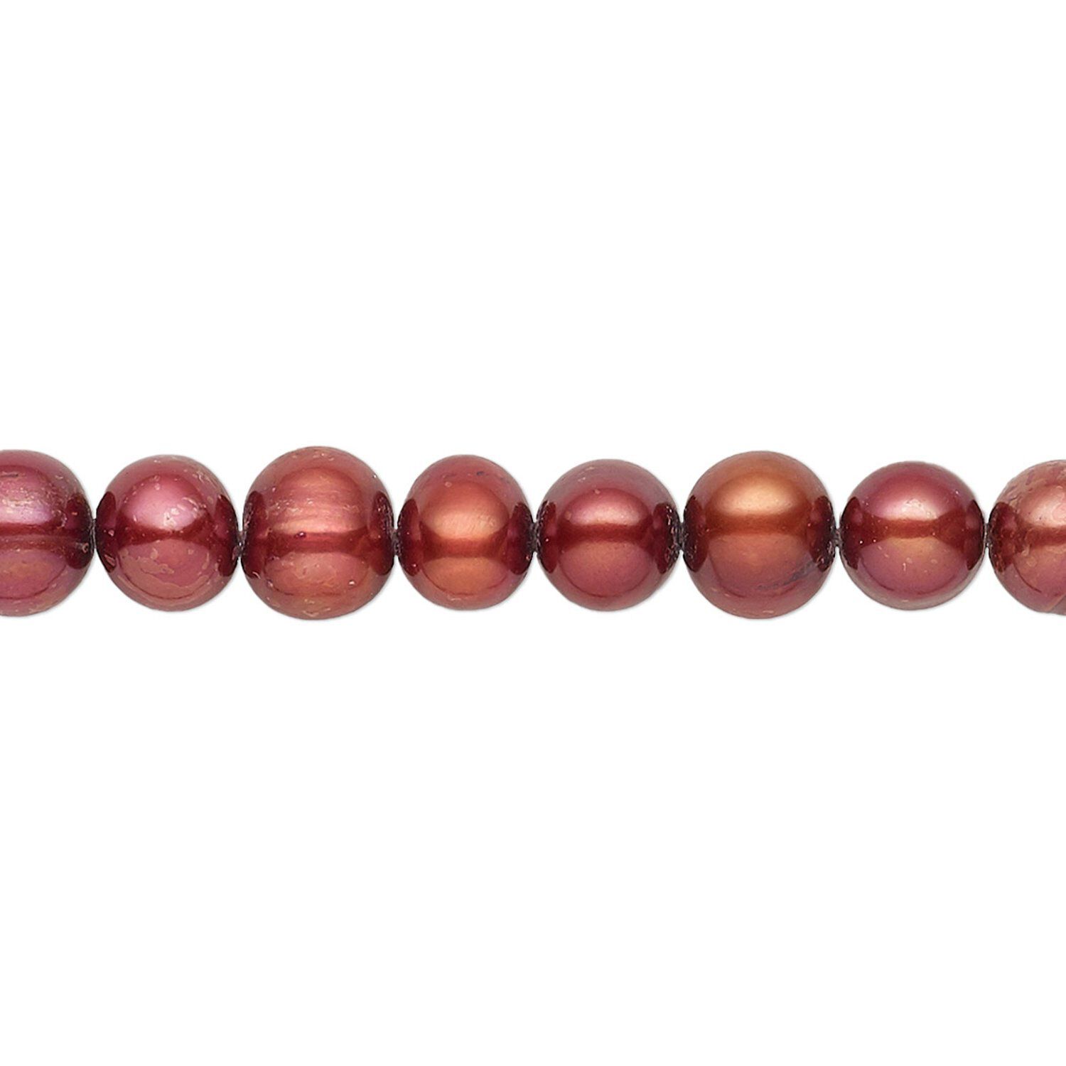 Pearl, cultured freshwater (dyed), cranberry, 5-6mm semi-round with 0.4-0.6mm hole, D grade, Mohs hardness 2-1/2 to 4. Sold per 15-inch strand.