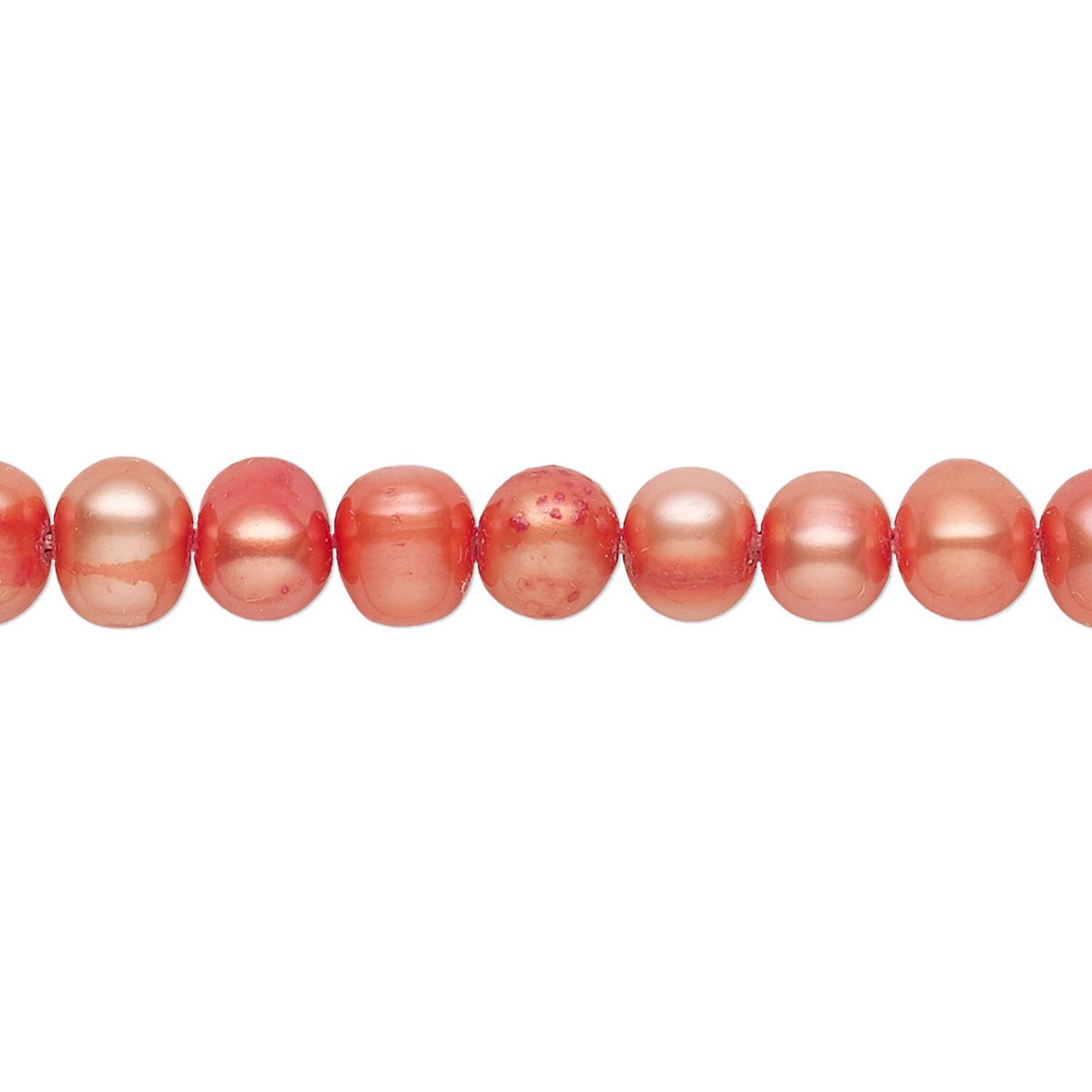 Pearl, cultured freshwater (dyed), tulip, 5-6mm semi-round with 0.4-0.6mm hole, D grade, Mohs hardness 2-1/2 to 4. Sold per 14-inch strand.