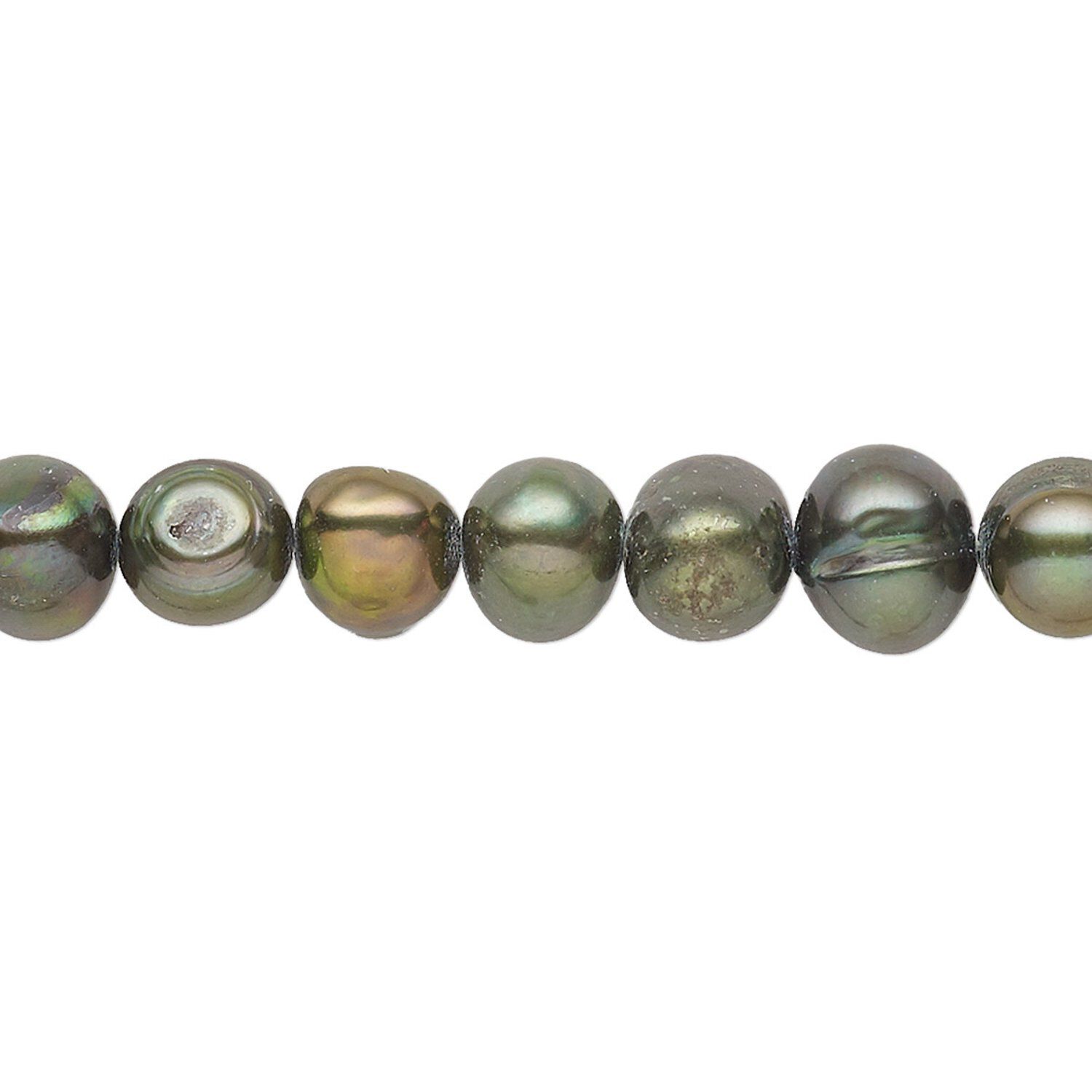 Pearl, cultured freshwater (dyed), dark green, 6-7mm semi-round with 0.4-0.6mm hole, D grade, Mohs hardness 2-1/2 to 4. Sold per 14-inch strand.