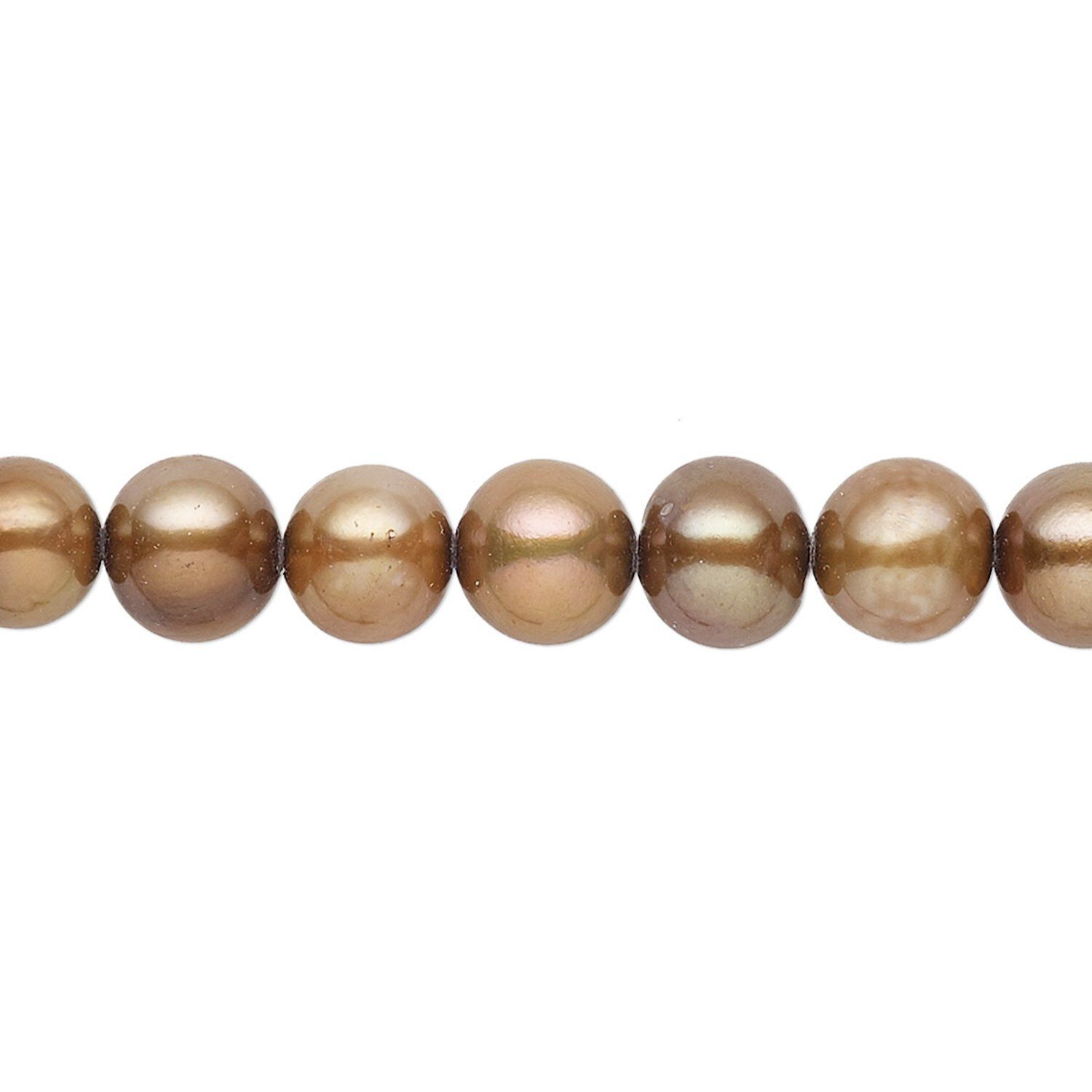 Pearl, cultured freshwater (dyed), iris gold, 7-8mm semi-round with 0.4-0.6mm hole, D grade, Mohs hardness 2-1/2 to 4. Sold per 15-inch strand.