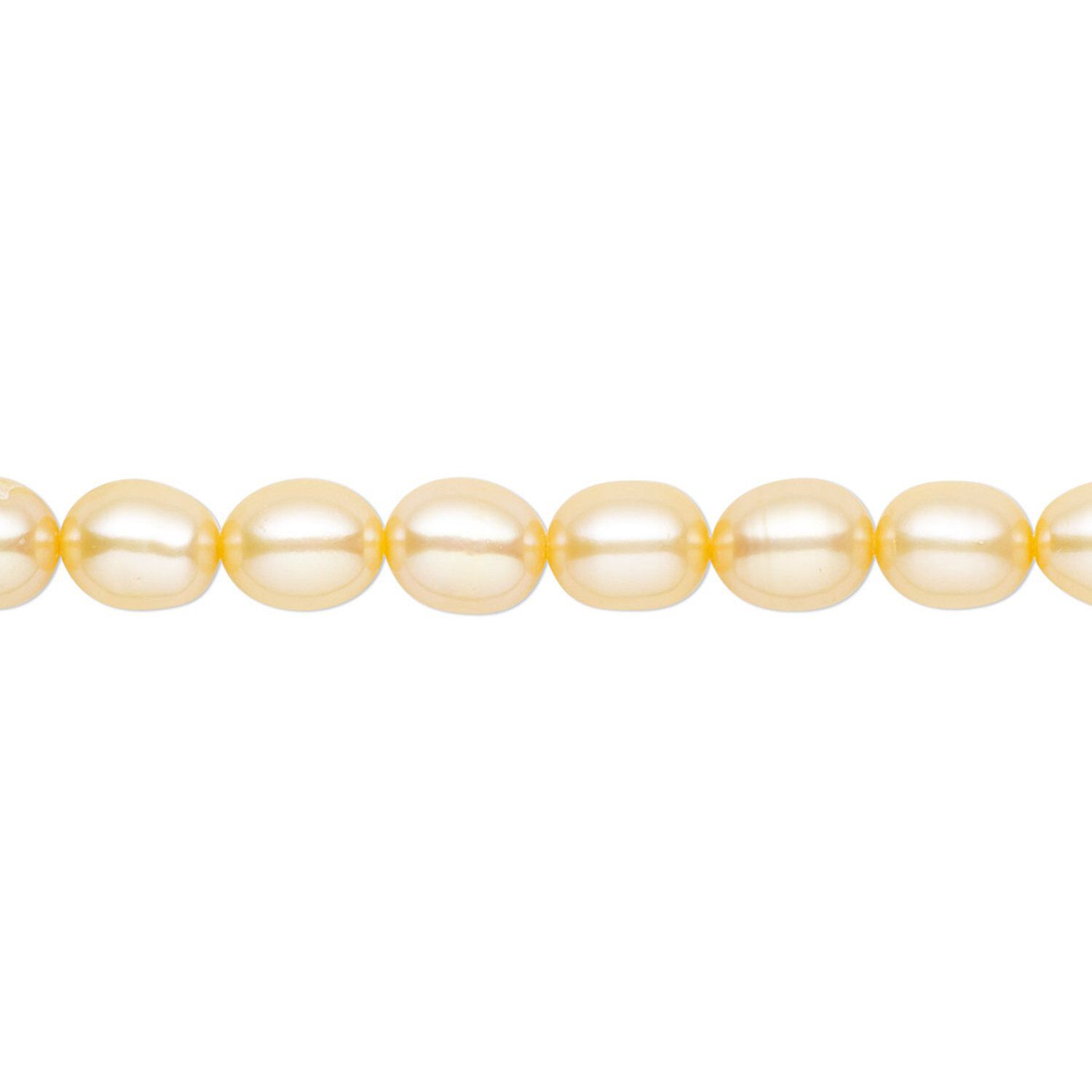 Pearl, cultured freshwater (dyed), apricot, 5x3mm-6x3mm rice with 0.4-0.6mm hole, D grade, Mohs hardness 2-1/2 to 4. Sold per 15-inch strand.