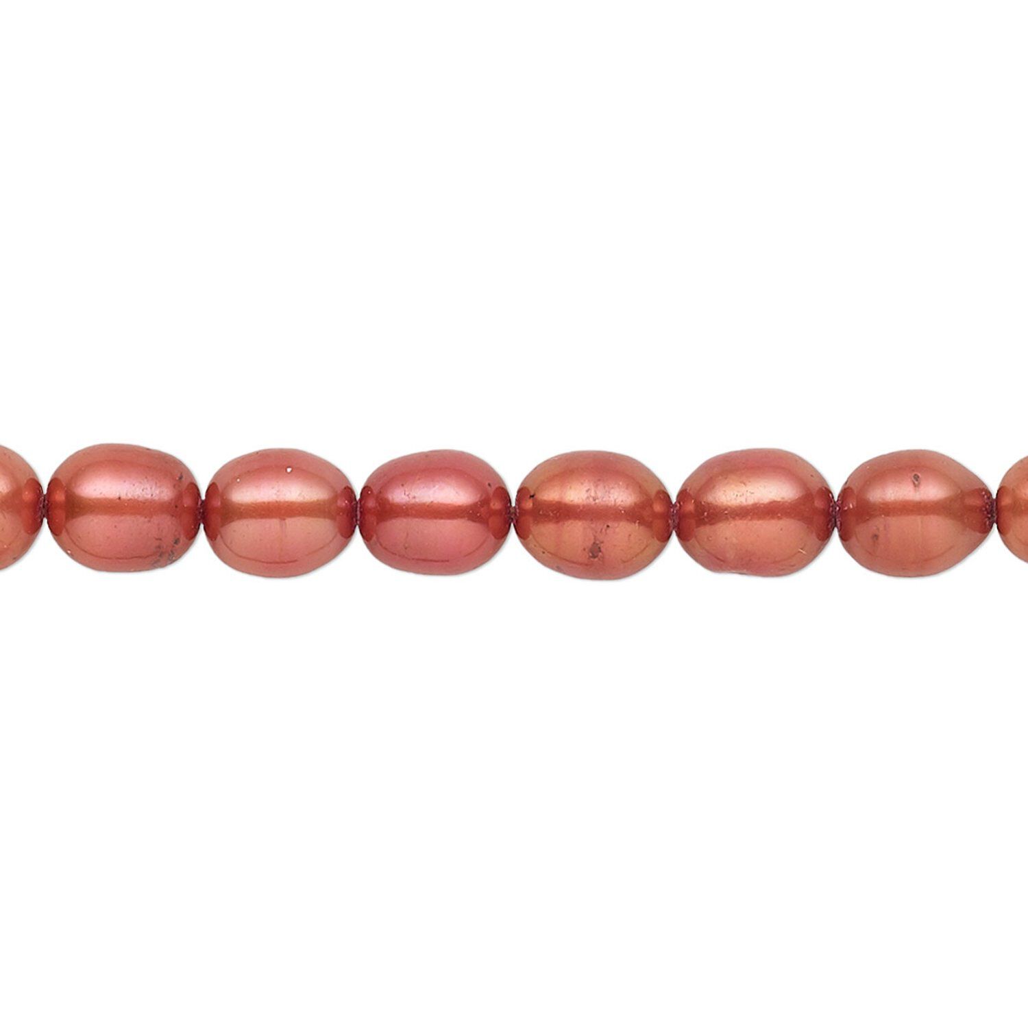 Pearl, cultured freshwater (dyed), red poppy, 5x3mm-6x4mm rice with 0.4-0.6mm hole, D grade, Mohs hardness 2-1/2 to 4. Sold per 15-inch strand.