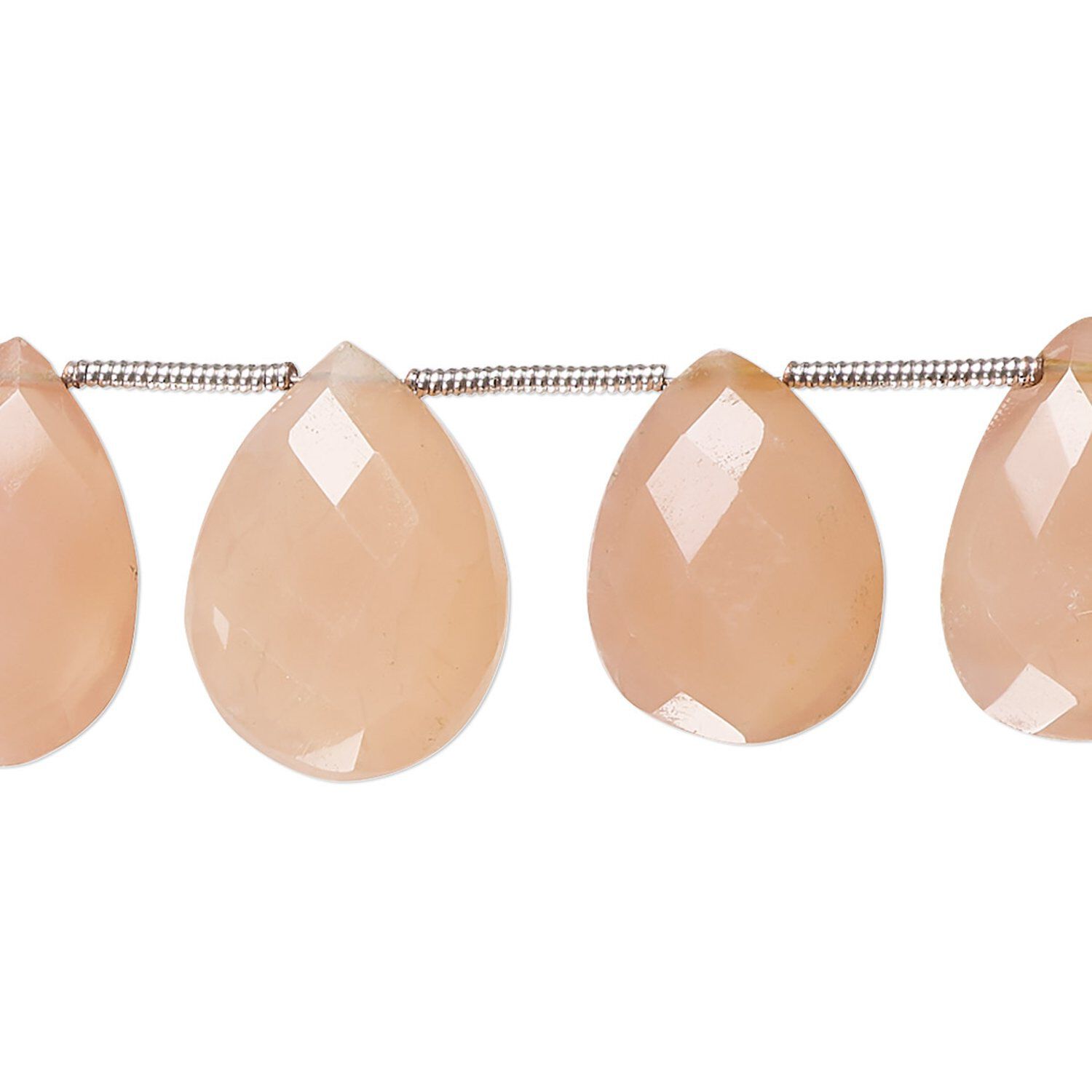 Peach chalcedony / pink chalcedony 1pkg14, hand-cut top-drilled faceted puffed teardrop bead 15x12mm-17x14mm