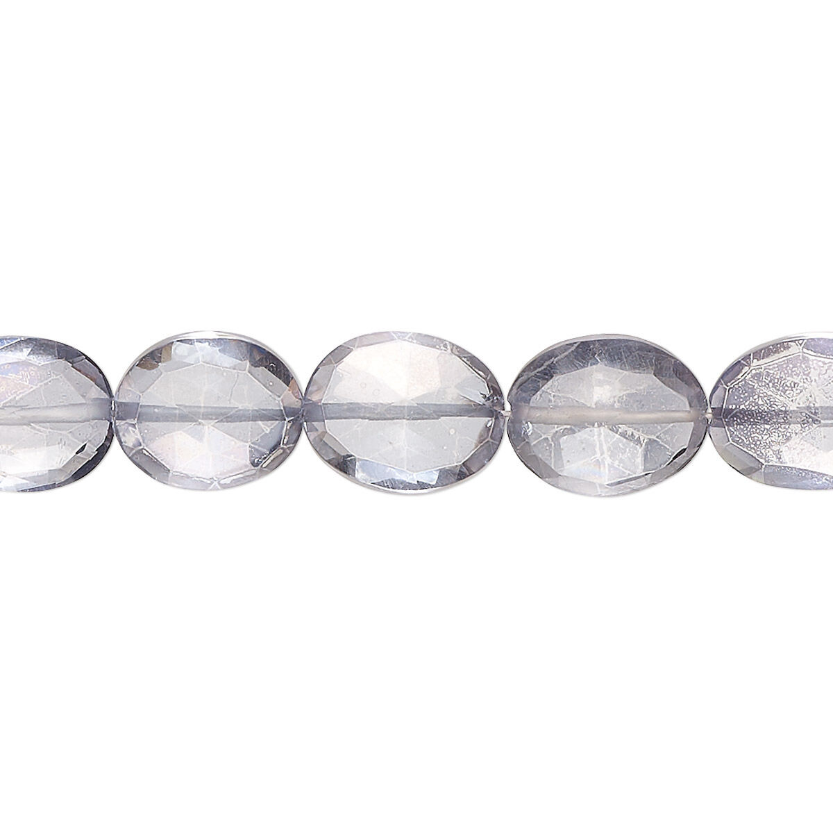 Quartz crystal 1pkg1, hand-cut faceted puffed oval bead 7 inch 8x7mm-11x9mm