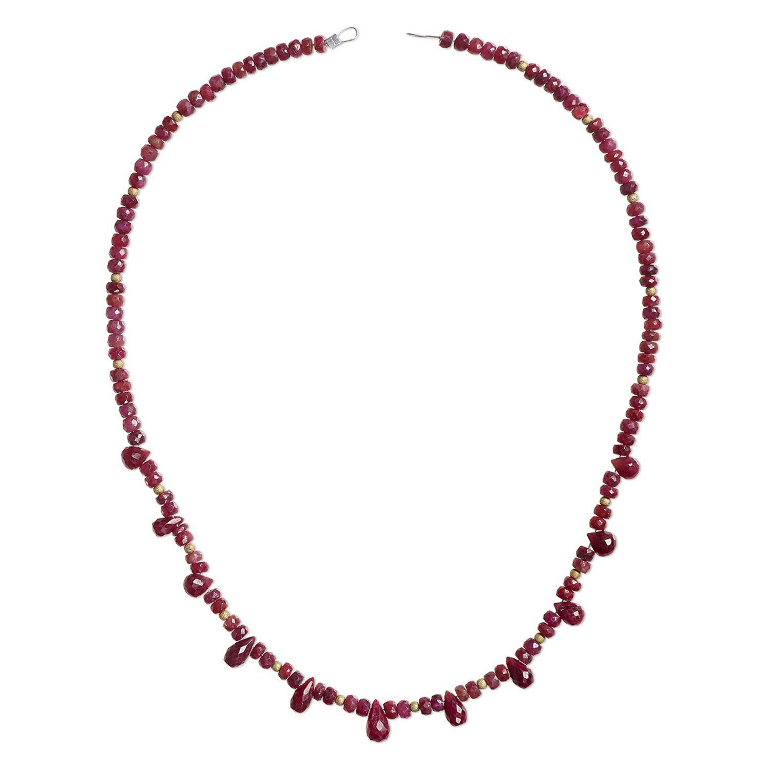 Ruby / sterling silver 1pkg1, faceted teardrop / faceted rondelle / round bead necklace base gold-plated 16 inch mixed sizes