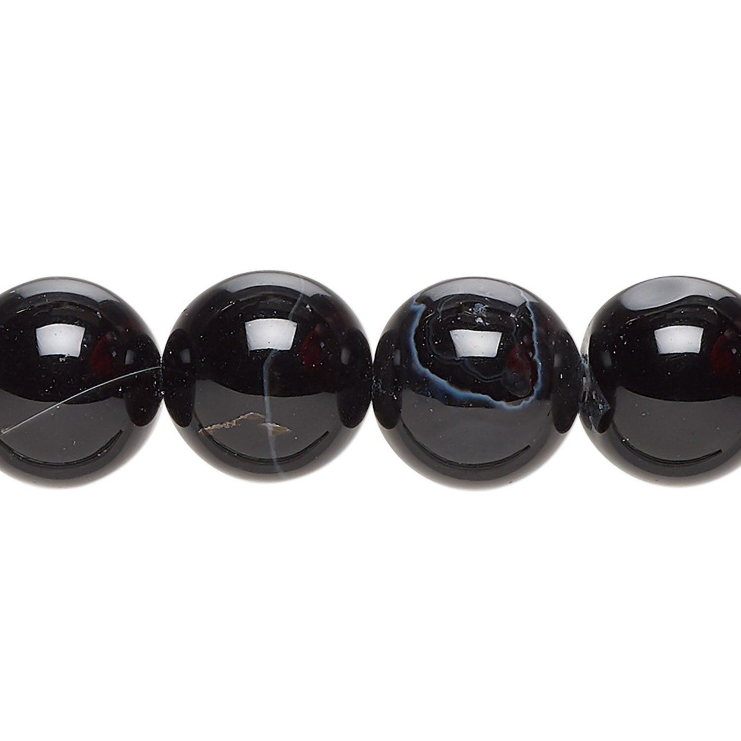 Black agate 1pkg1, round bead 15 inch 11-12mm