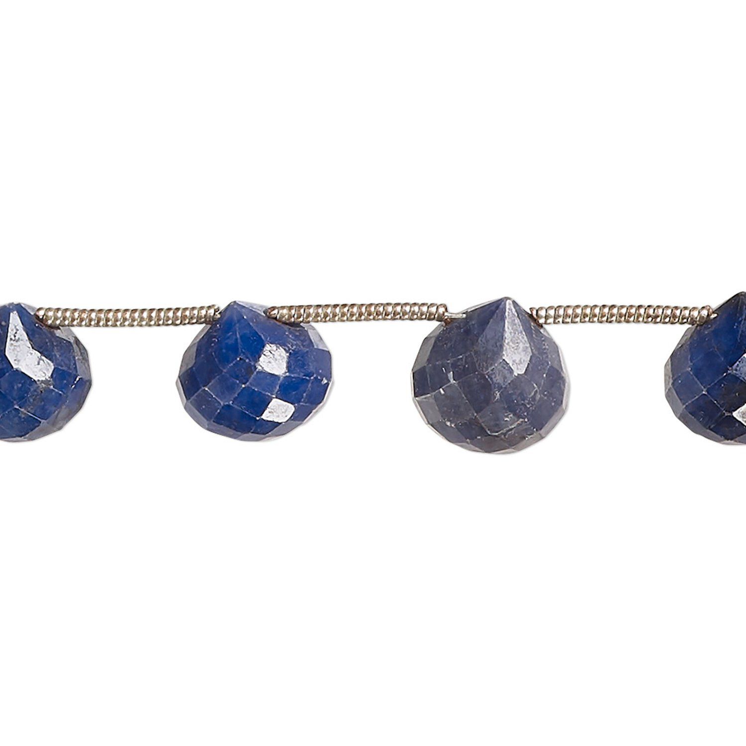 Blue sapphire 1pkg14, hand-cut top-drilled faceted teardrop bead 8x8mm-11x10mm
