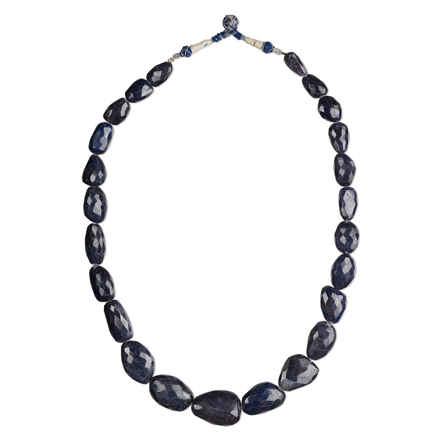 Bead, blue sapphire (dyed), dark, small to extra-large graduated hand-cut nugget, C grade, Mohs hardness 9. Sold per 21-inch strand.
