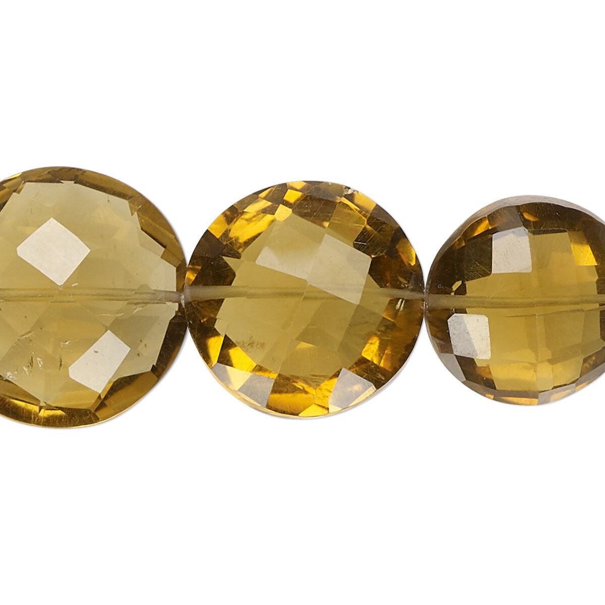 Golden quartz 1pkg1, hand-cut faceted puffed flat round bead 7 inch 15-19mm