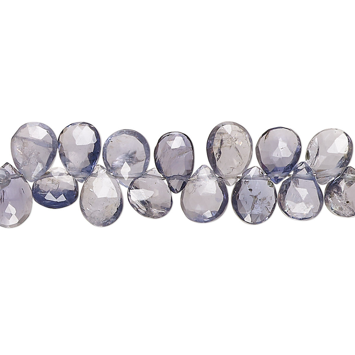 Iolite 1pkg1, hand-cut top-drilled faceted puffed teardrop bead natural 8 inch 6x5mm-9x6mm