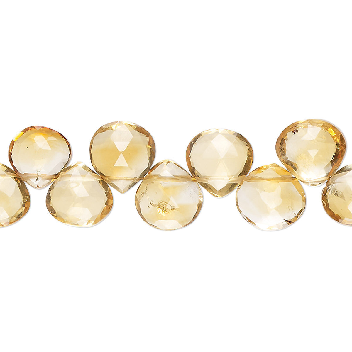 Citrine 1pkg1, hand-cut top-drilled faceted puffed teardrop bead 8 inch 8x7mm-9x9mm