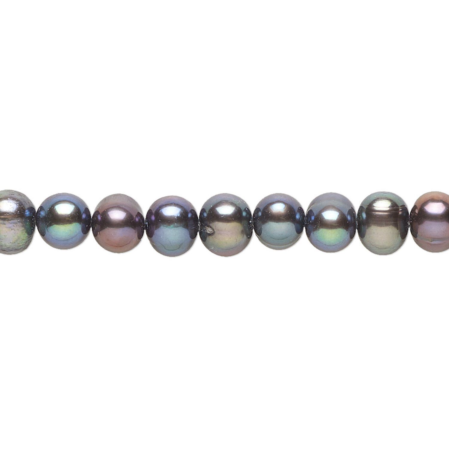 Pearl, cultured freshwater (dyed), peacock, 5mm semi-round, C+ grade, Mohs hardness 2-1/2 to 4. Sold per 15-1/2" to 16" strand.