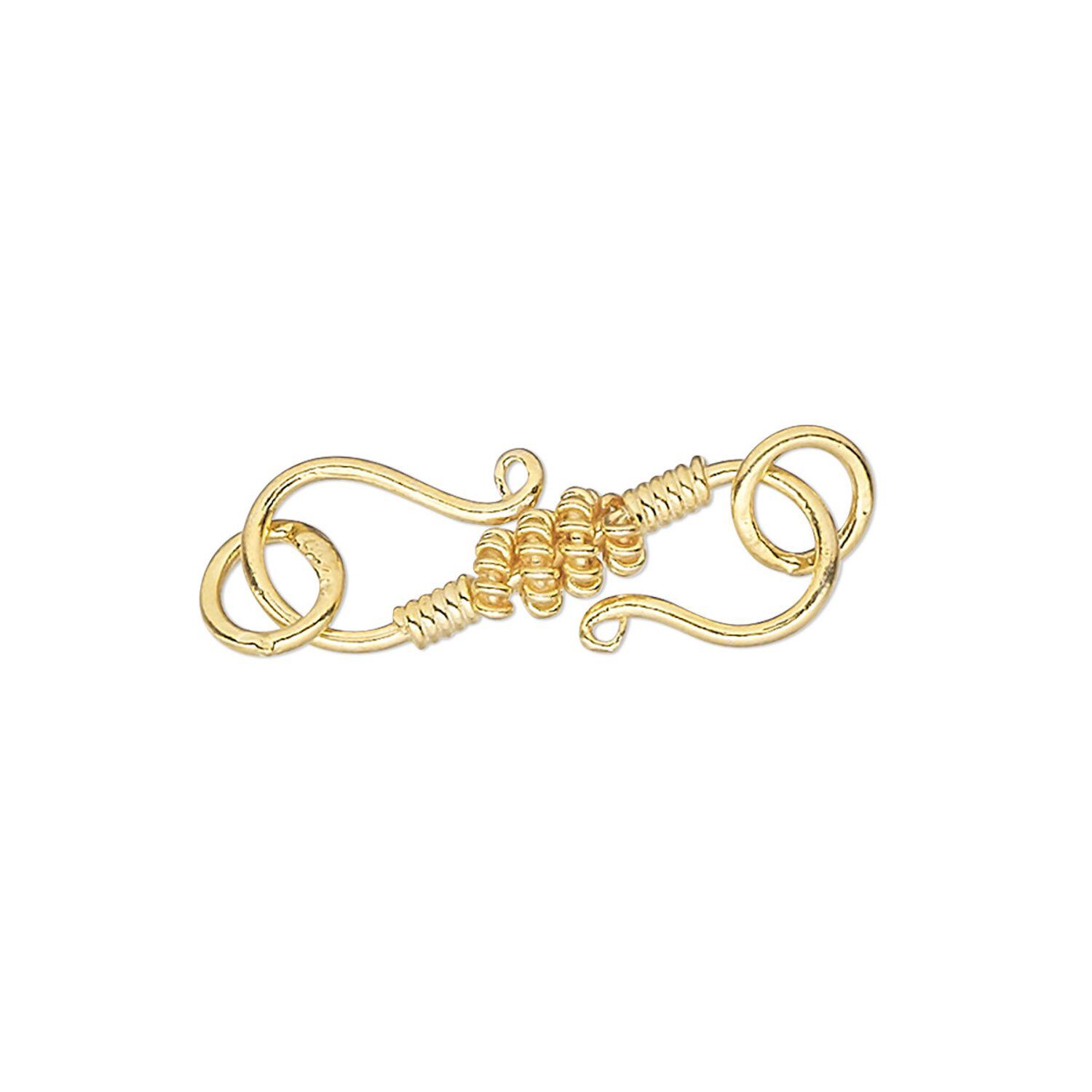 Clasp, S-hook, gold-finished sterling silver, 26x11mm. Sold individually.